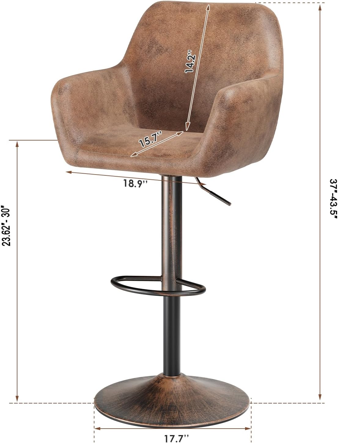 Keyluv Bar Stools Set of 2 for Kitchen Counter Adjustable Swivel Height Barstools 29 Inch Faux Leather Bar Chairs with Padded Back and Chromed Metal Base, Retro Brown