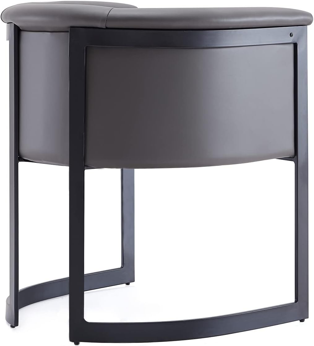 Manhattan Comfort Corso Faux Leather Upholstered Dining Chair, Barrel-Style Foam Padded Seat, Unique Geometric Metal Frame, Fully Assembled Accent Furniture, Grey