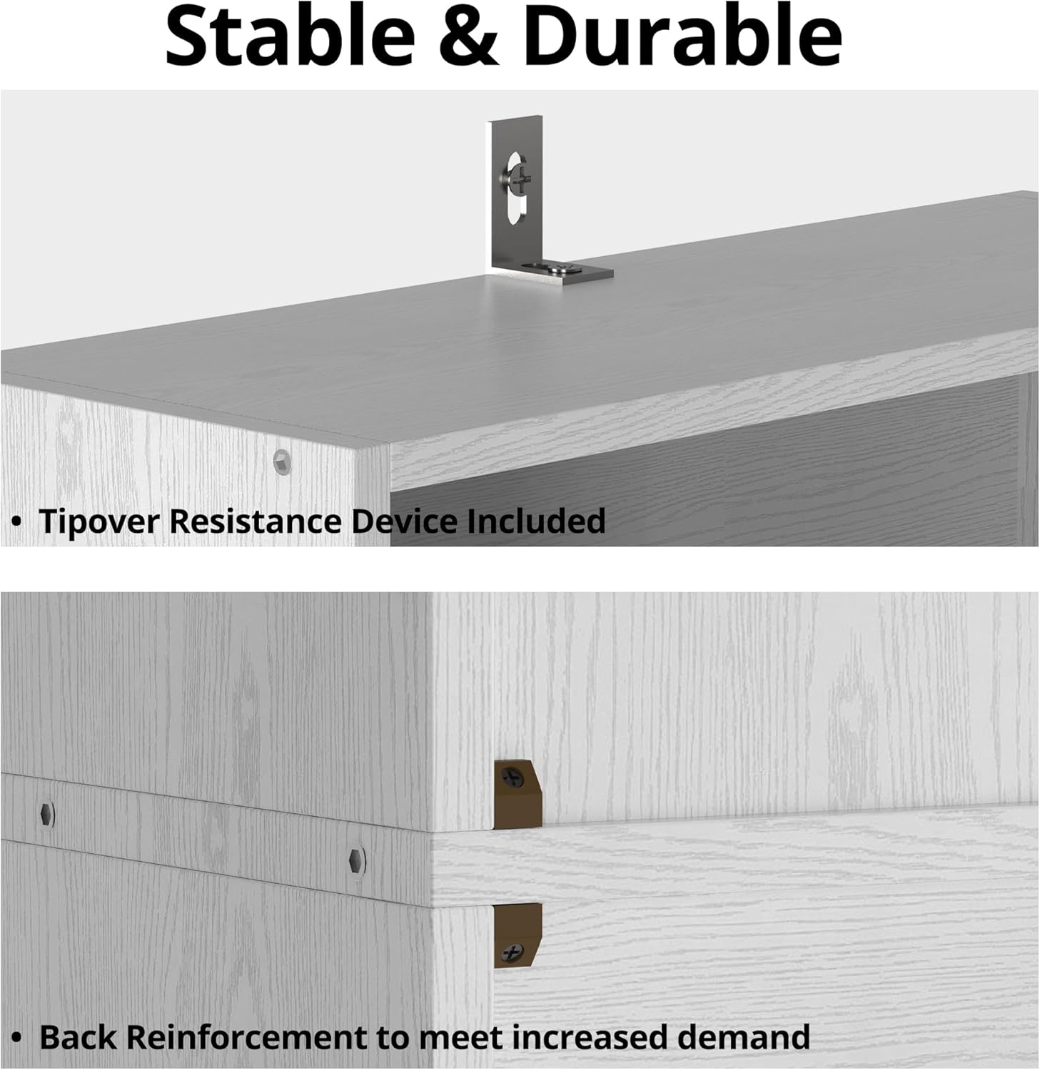 - Stable Construction: With strengthen screws and the tipover resistance device, the bookcase is more stable