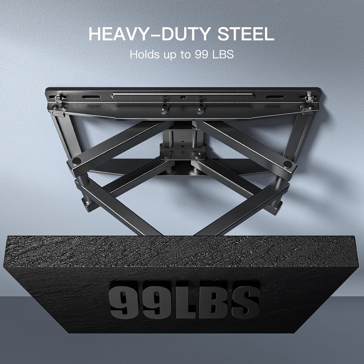 - Enhanced Viewing Experience: Our wall mount features 15° forward and 5° backward tilt to help minimize glare from light sources or windows. With 16.89″ arm extension and 90° swivel range, you can enjoy optimal viewing angles from multiple seats in the room. Retract the mount back to 2.56″ from the wall for a sleek, low-profile look.