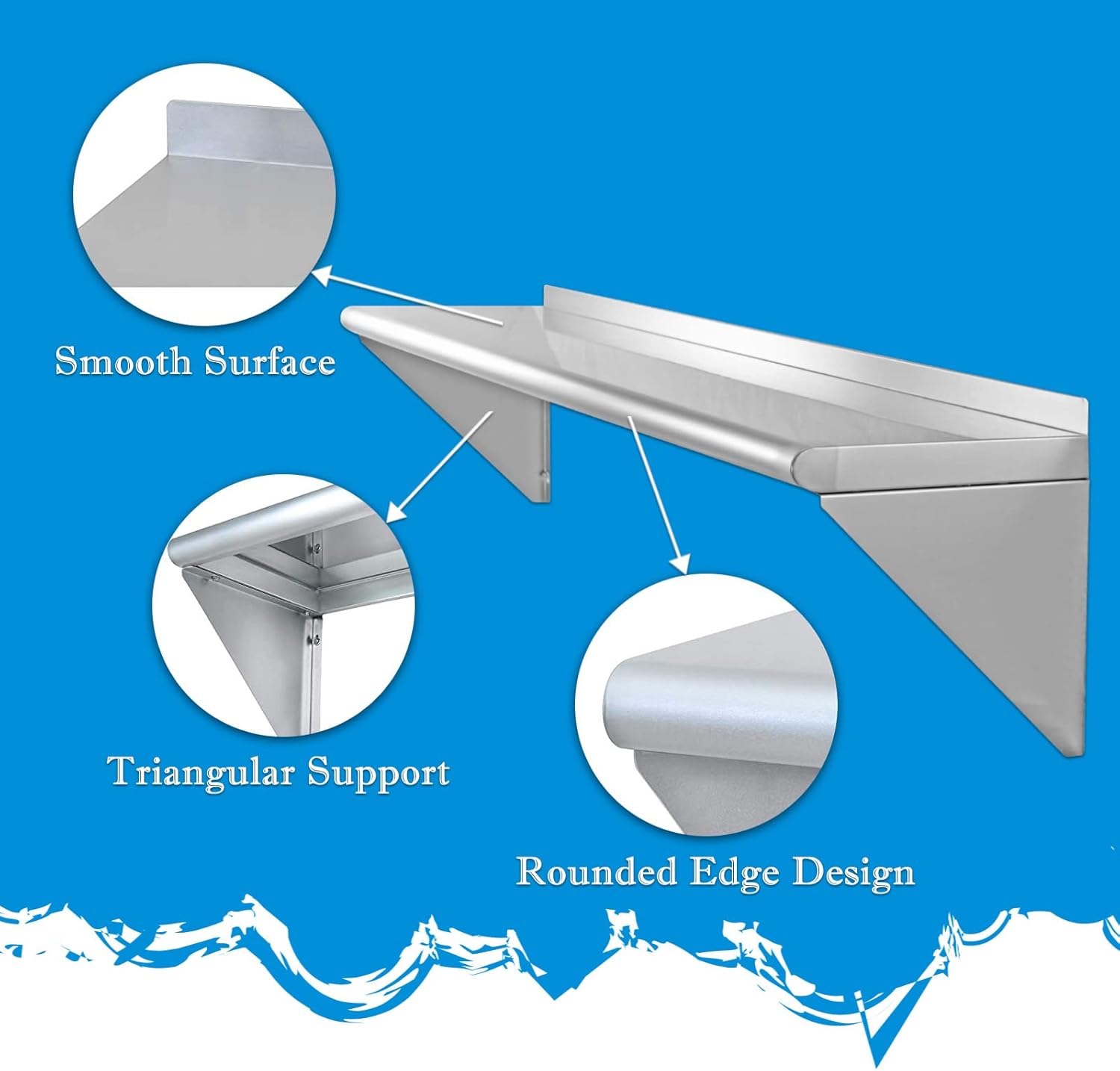 12''x48'' - 2packs Wall Mounted Stainless Steel Shelf NSF Commercial Metal Wall Mount Floating Shelving for Kitchen, Restaurant, Food Truck,Garage,Washrooms,Home&Hotel