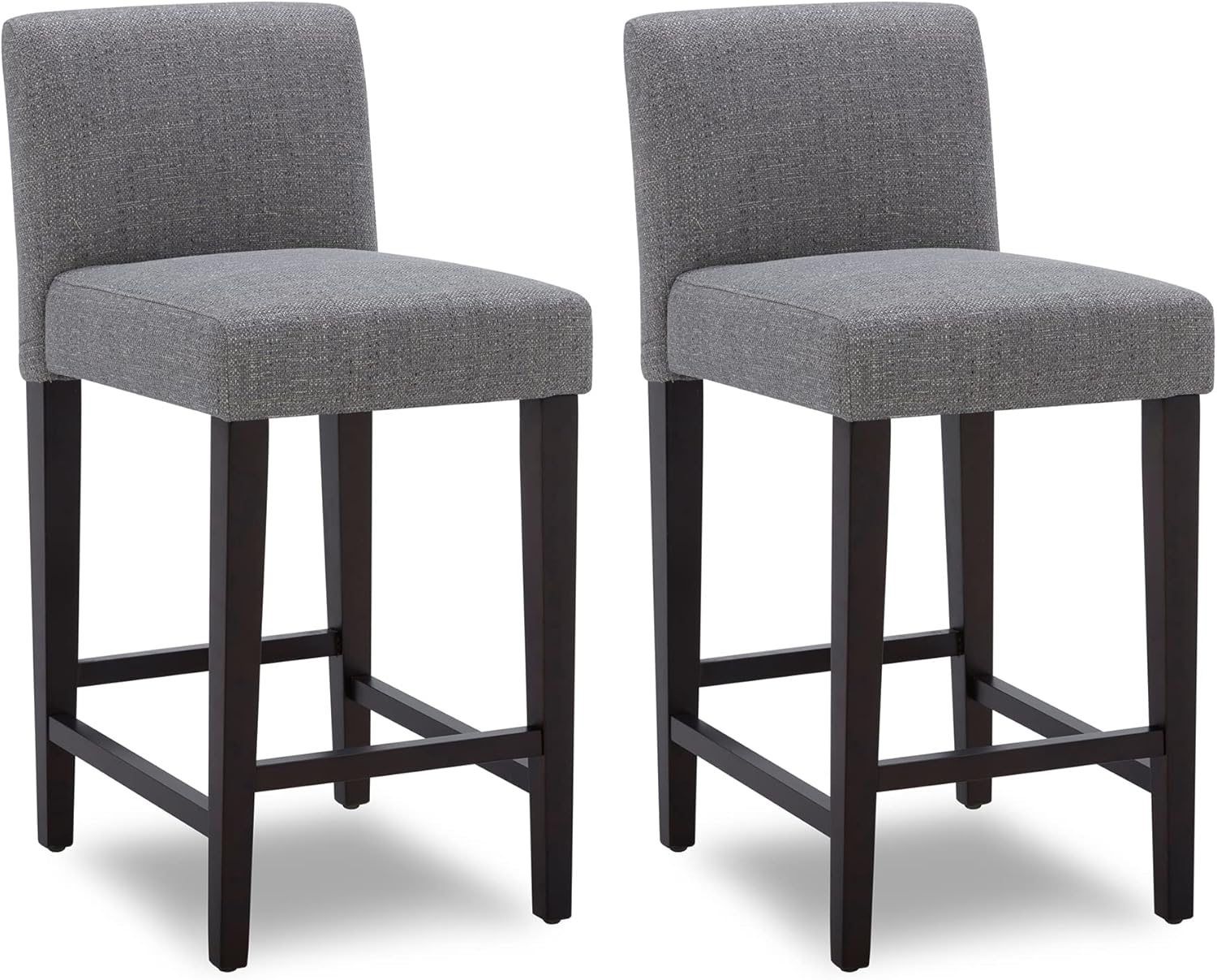 CHITA Counter Height Bar Stools Set of 2, 25" H Seat Height Upholstered Barstools, Fabric in Fog Grey