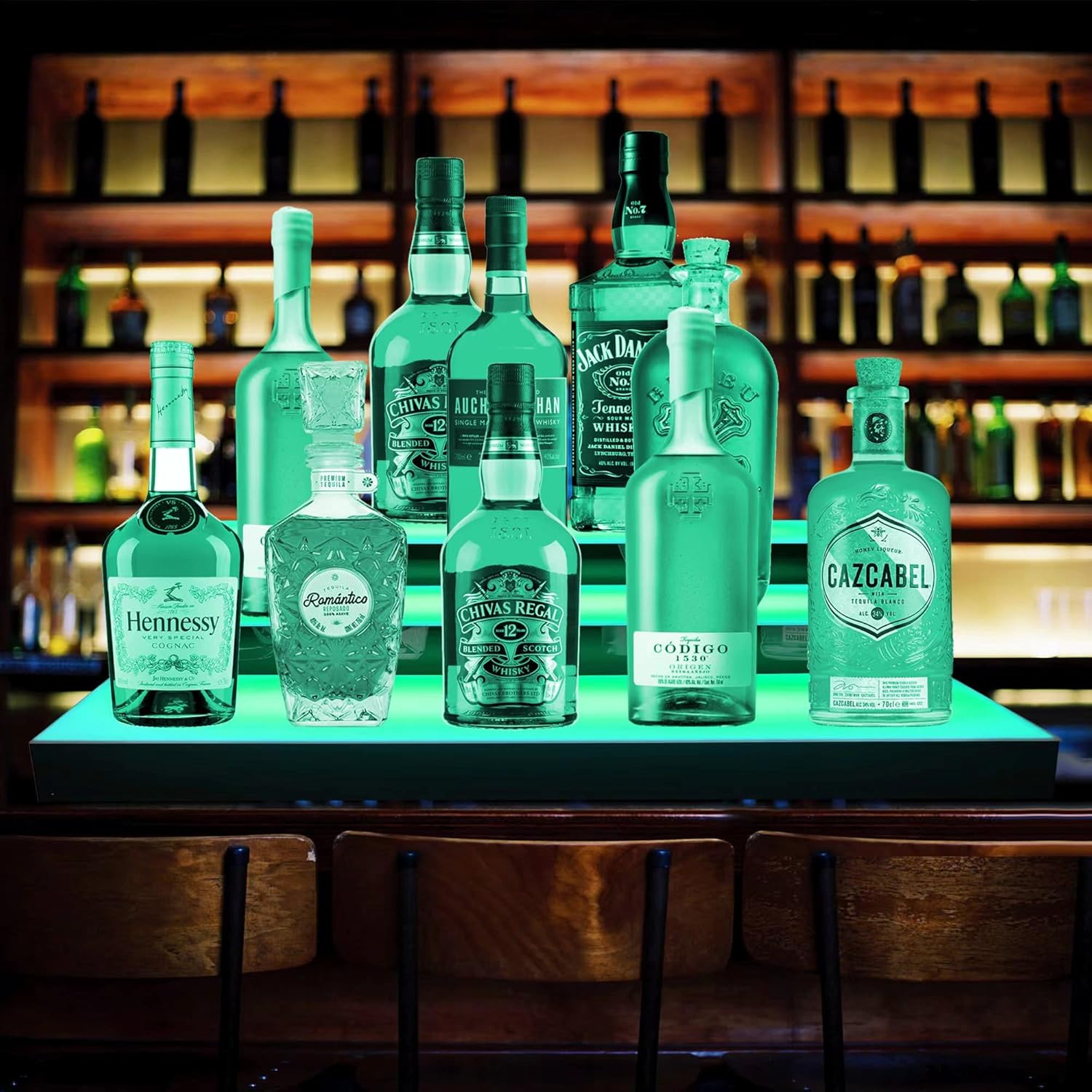 - 【Premium Material】Our 24'' 3-tier LED liquor shelf is made of quality acrylic material. The thickened panels enhanced the hardness and durability of the product. Besides, the polished smooth surface makes the shelf more glossy for better display