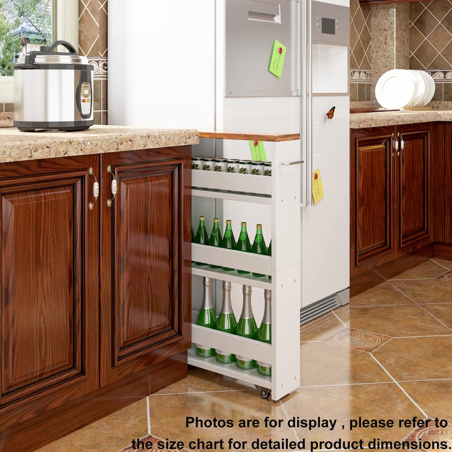- 【Narrow Spaces Storage Design】This 4-tier storage cart is 5.5 inches wide and has plenty of storage space. It has 4 smooth wheels and 1 convenient handle. Can be used in closets, kitchens, bathrooms, garages, laundry rooms, offices, or washing machines and dryers.