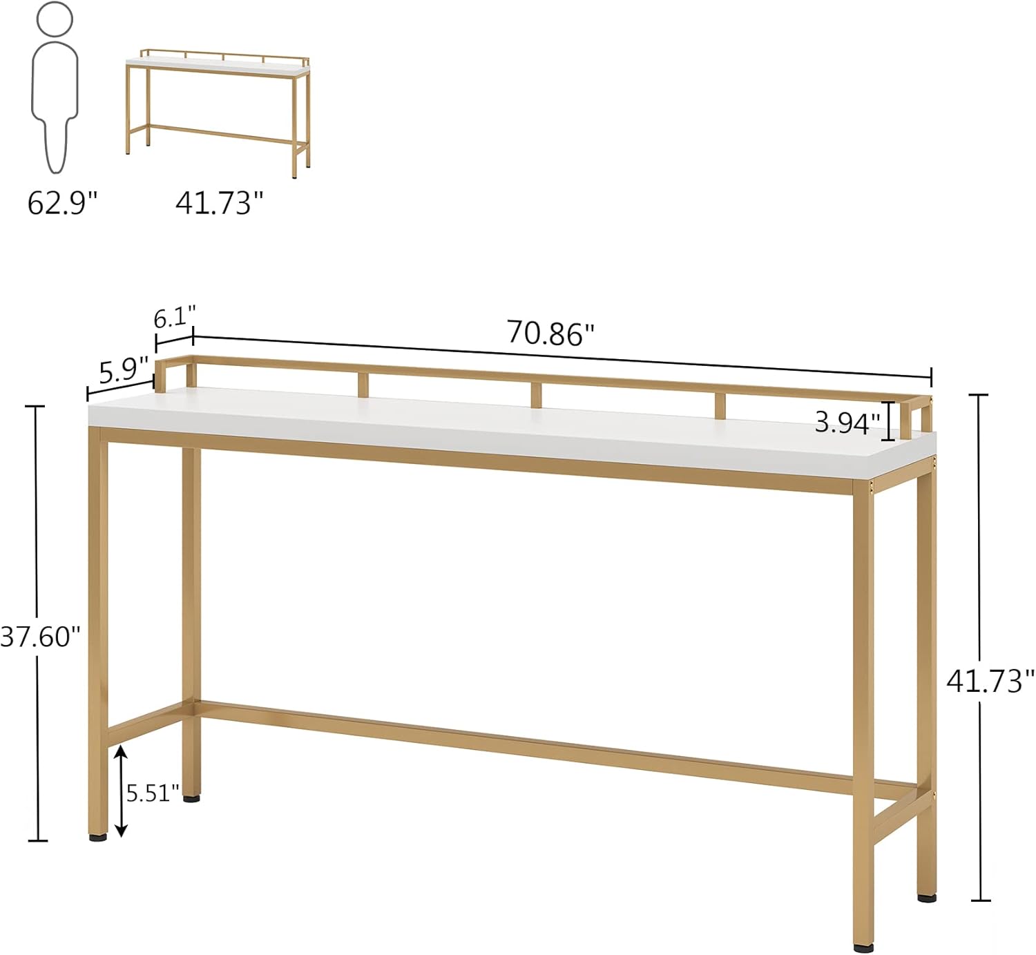 Tribesigns 70.9 inch Extra Long Sofa Table, Narrow Console Table Behind Couch, Modern Entryway Table Skinny Hallway Table for Living Room (White+Gold)