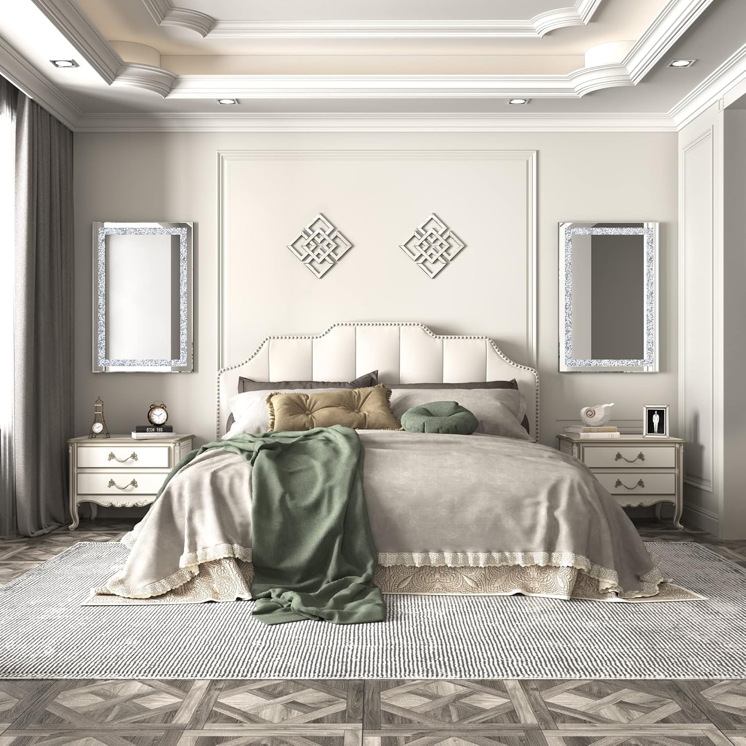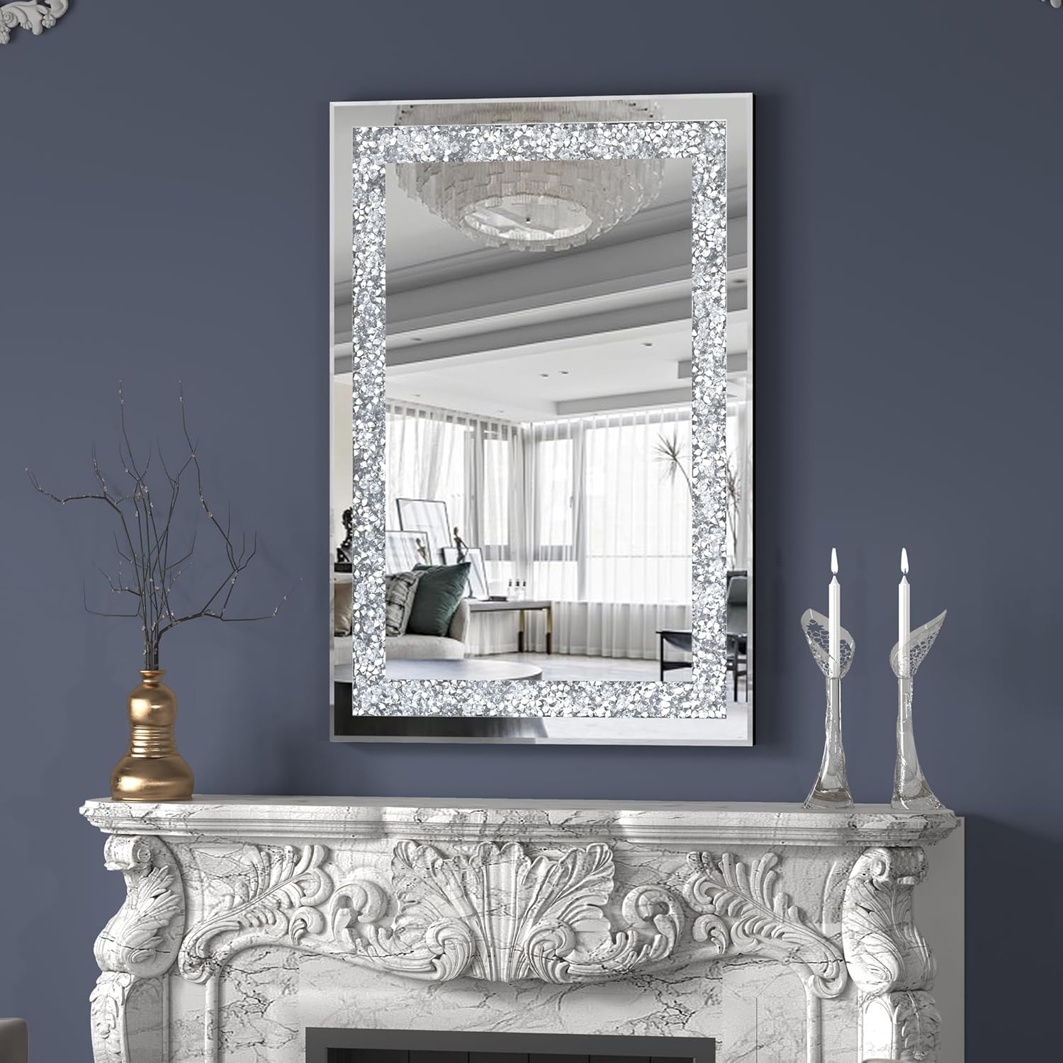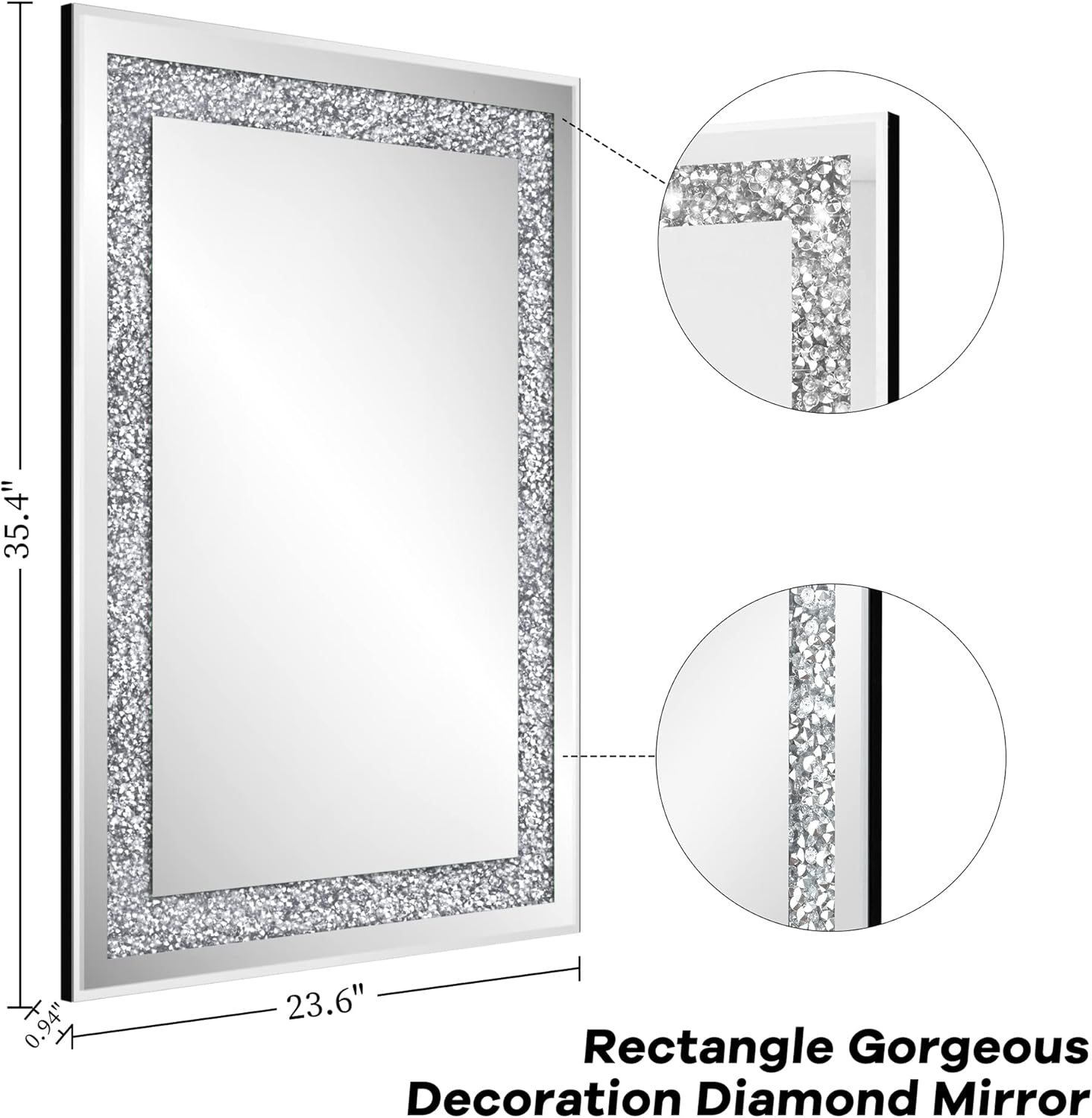- Size: 23.6"x35.4" of the mirrors for wall decor bedroom.The rectangle shaped frameless mirror design features sparkly twinkle bling crystal crush diamond