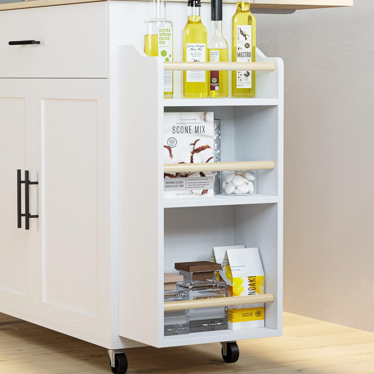 IRONCK Kitchen Island with Storage, Rolling Kitchen Island on Wheels with Drop Leaf, 3 Open Spice Rack Shelf, Door Cabinet, Drawer, Kitchen Cart Island Table for Kitchen, White