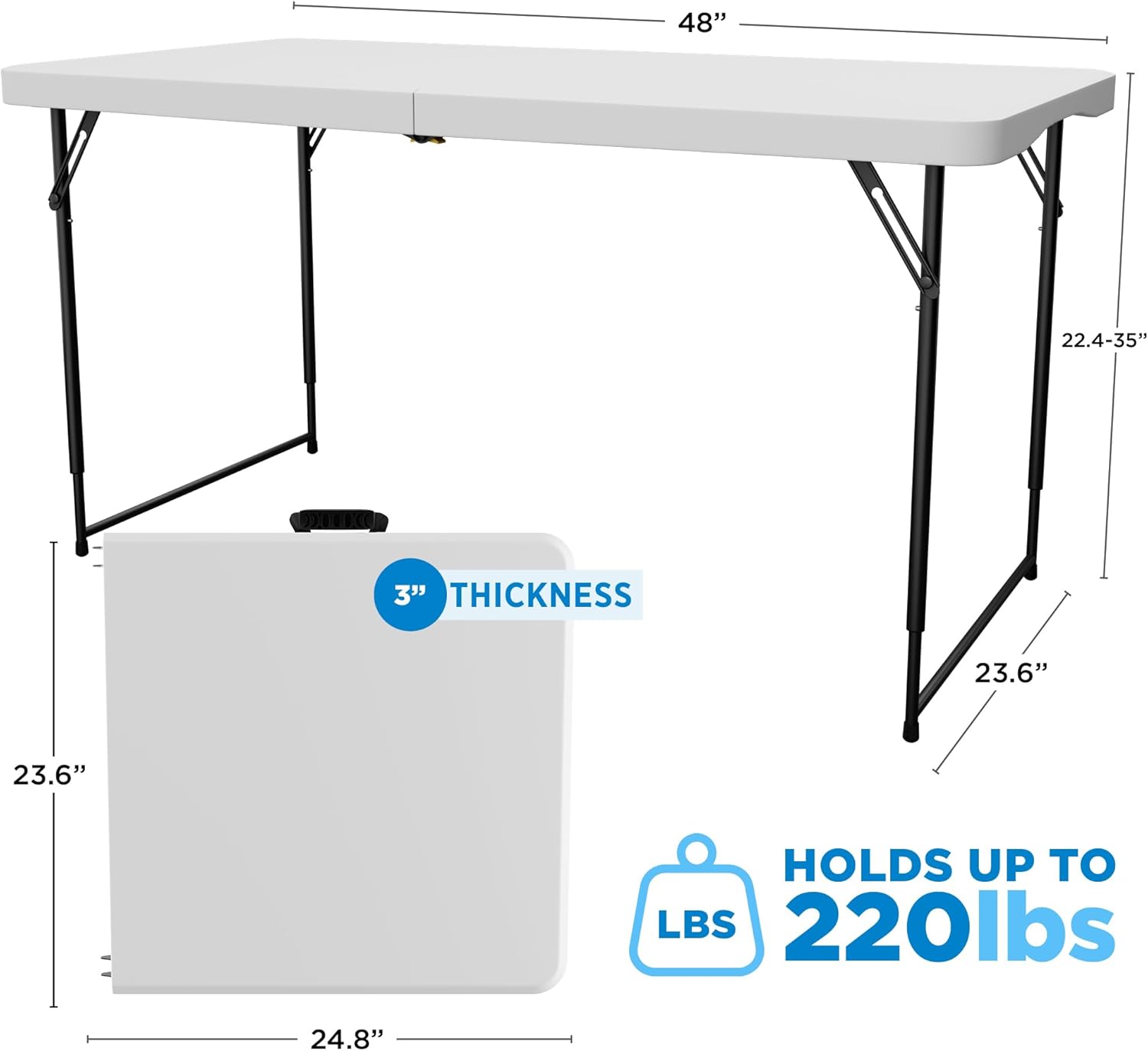 Sorfey Folding Table 4-Foot X 24 inch, Adjustable to 4 Heights, White Plastic