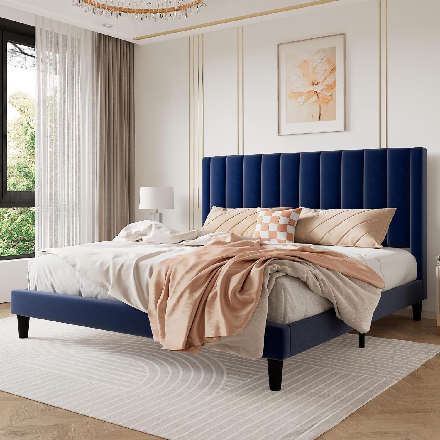 - VELVET BED JUST FOR YOU: Upholstered in plush velvet, our luxurious bed is the best choice for your classy life, complete with upholstered side rails and a padded queen headboard, finally you can have style and comfy at the very same time