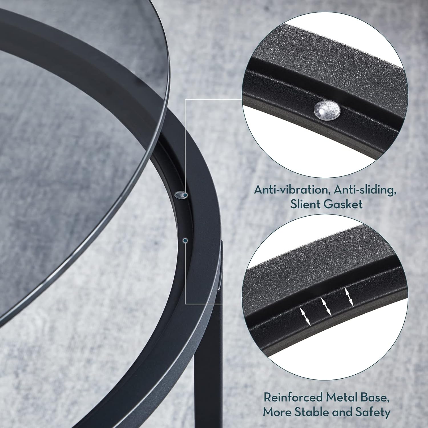 SAYGOER Round Coffee Table Glass Coffee Tables for Small Space Simple Modern Center Table for Living Room Home Office, Sofa Side Table with Metal Steel Frame, Easy Assembly, Gray Black