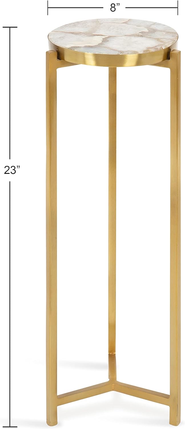 Kate and Laurel Aguilar Modern Drink Table; 9 x 9 x 23; Natural Stone and Gold; Genuine Quartz Accent Table for Small Spaces