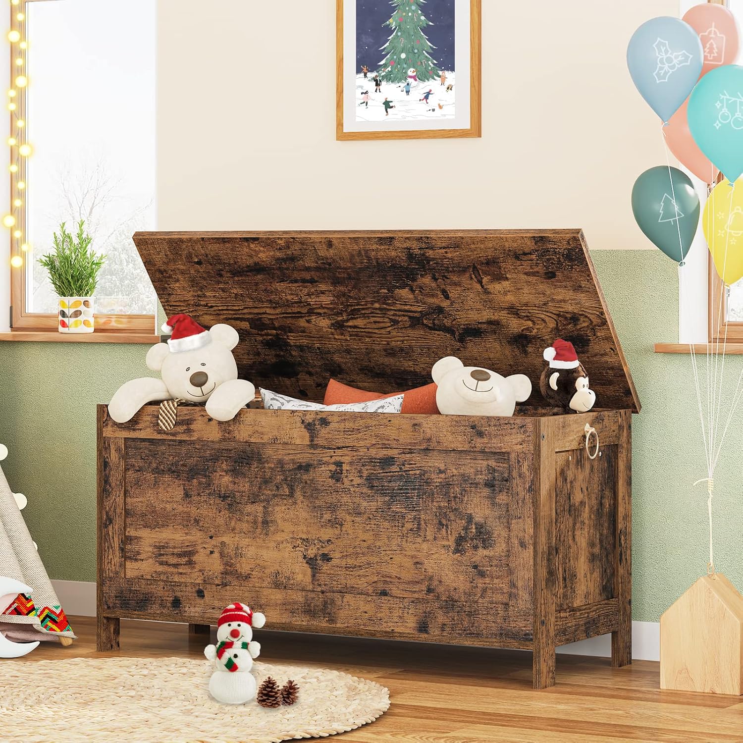 HOOBRO Toy Box, Retro Wooden Look Storage Chest with Safety Hinge, Entryway Storage Bench Supports 220 lb, 39.4 x 15.7 x 18.9 Inches Toy Chest Organizer, Easy Assembly (Rustic Brown) BF100CW01