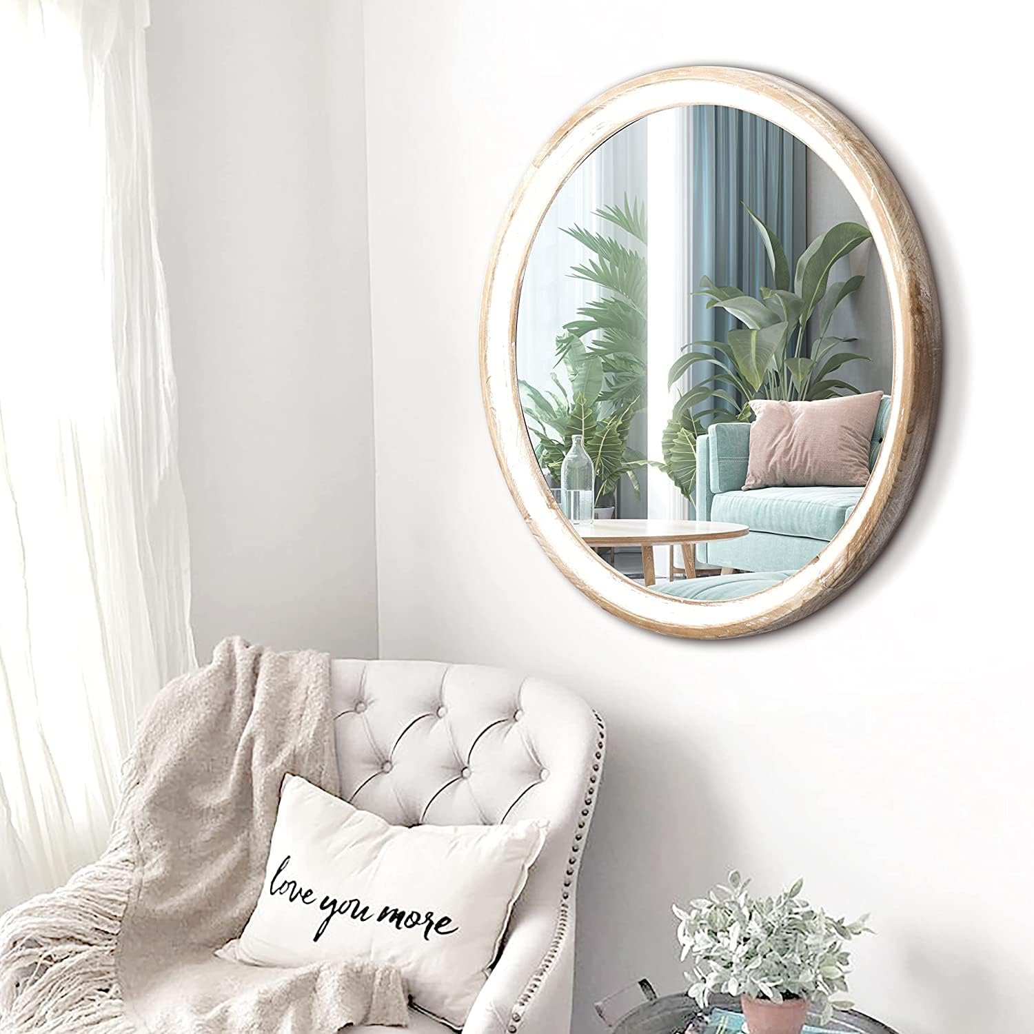 - Perfect Size for Any Room: Measuring 24 inches in total diameter, with the round wood mirror glass itself at 18.15 inches, this mirror is large enough to make a statement on any wall, whether in the bathroom, living room, or bedroom. Its size guarantees it will draw attention and enhance any space.