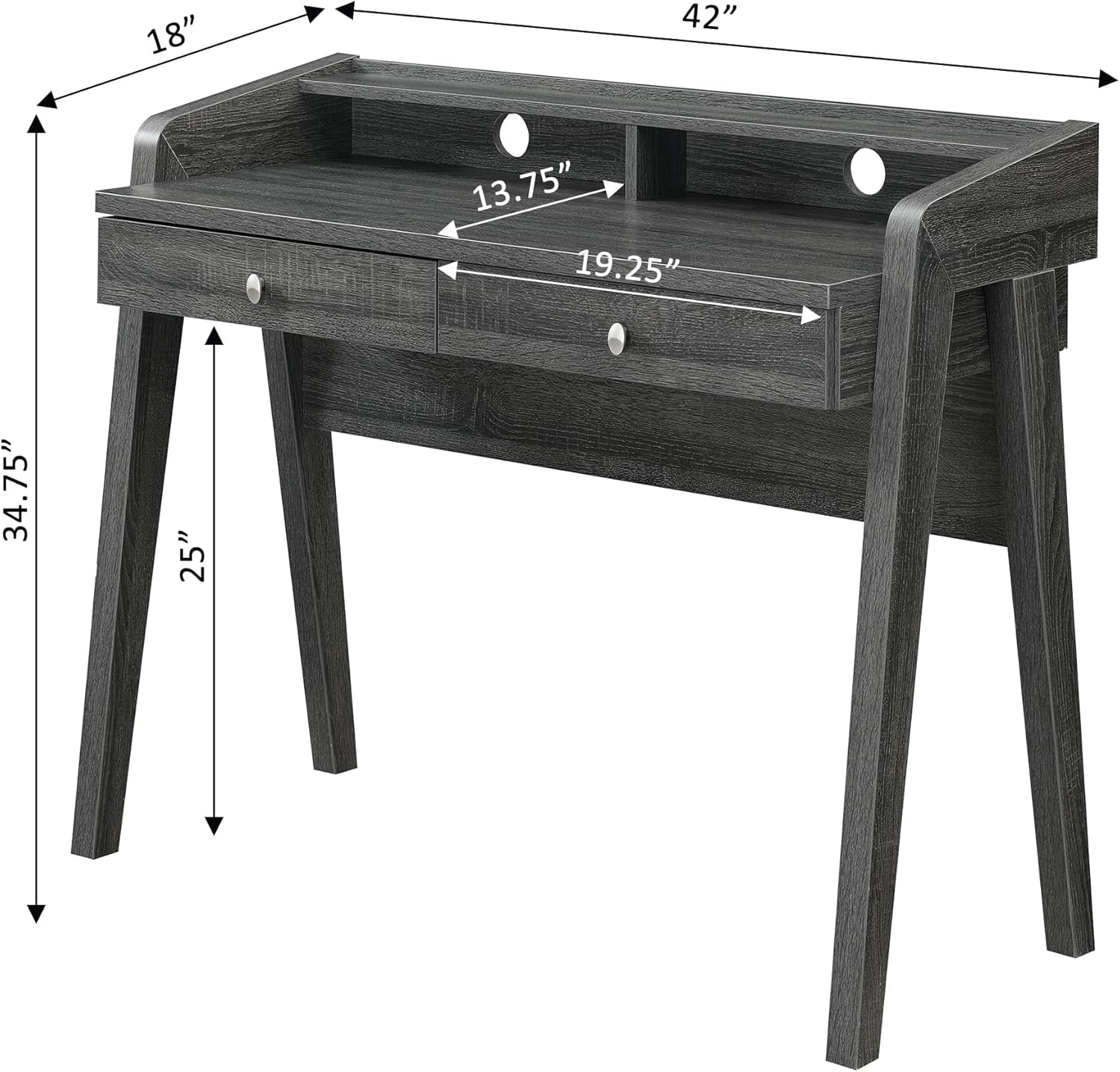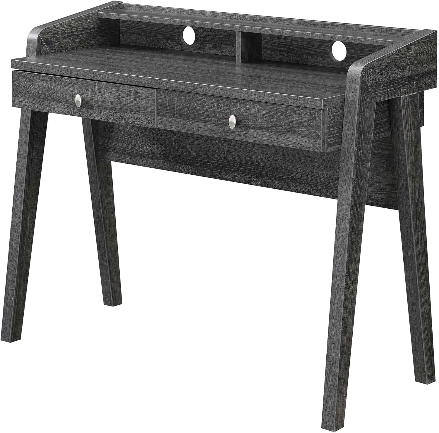 Convenience Concepts Newport Deluxe 2-Drawer Desk with Shelf, Weathered Gray