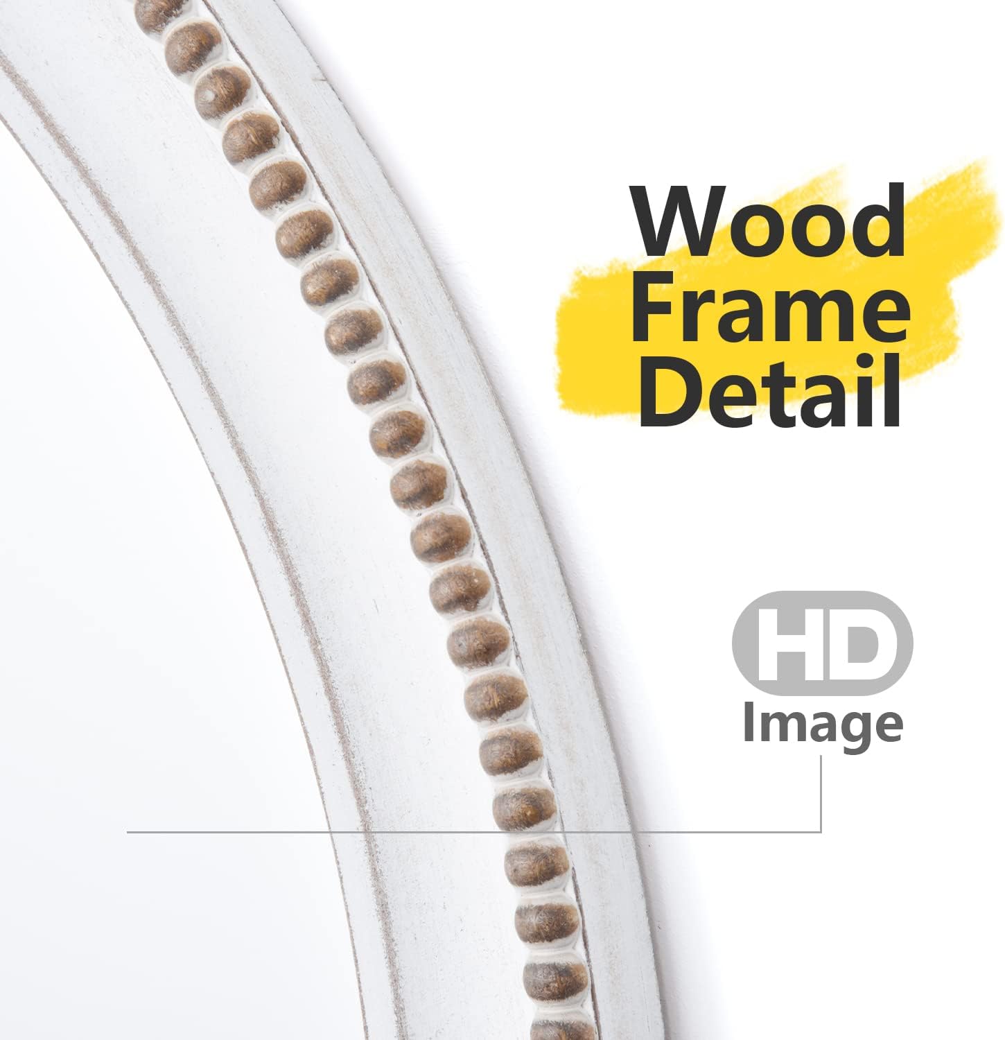sawsile Wood Circle Mirror,Rustic Farmhouse Wall Mirror 24 inch Round Morden Decoration Wood Large Mirror White Accent Mirror for Bedroom,Living Room
