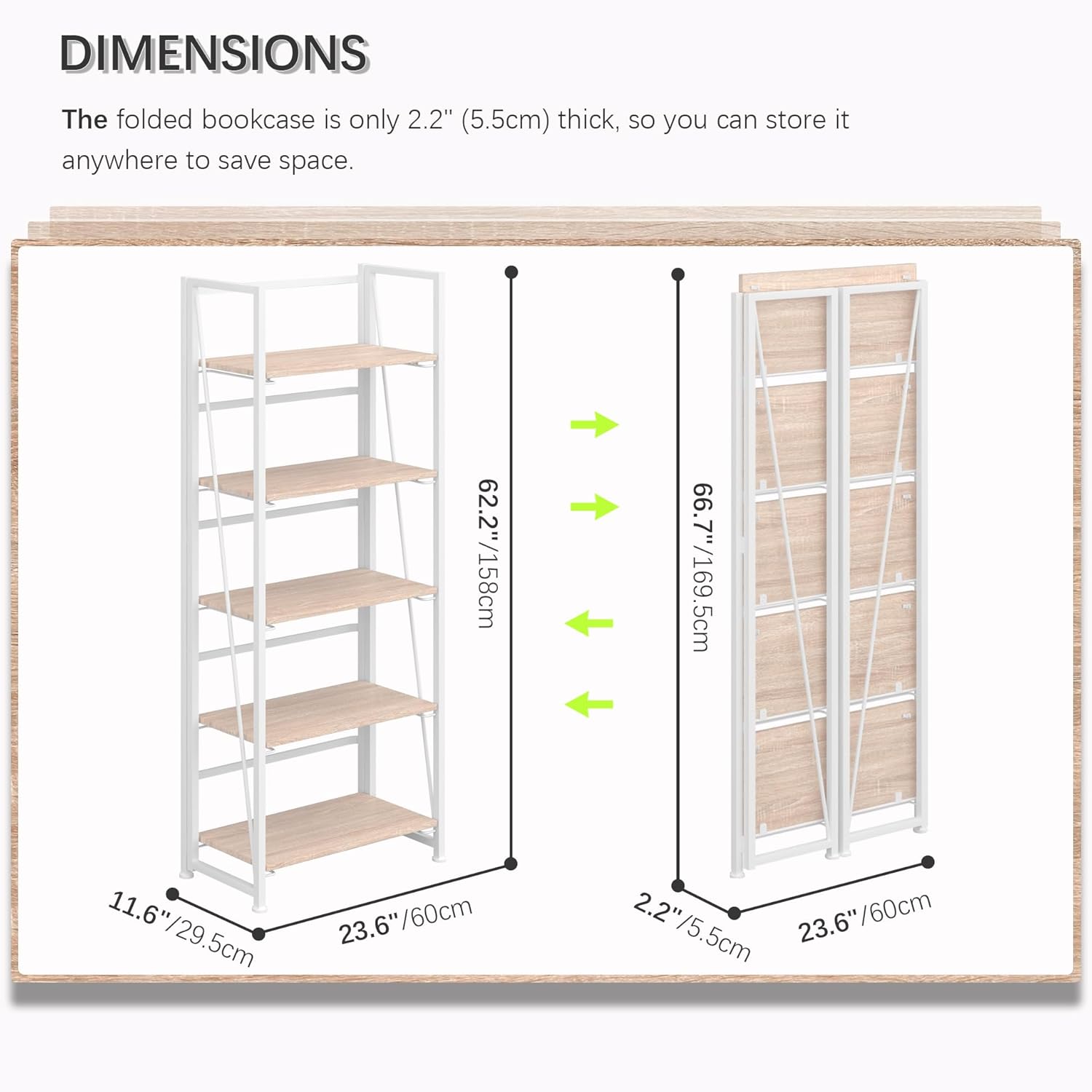 - 【Storage shelf folding sized】23.62x2.2x66.7 inches (60x5.5x169.5cm).