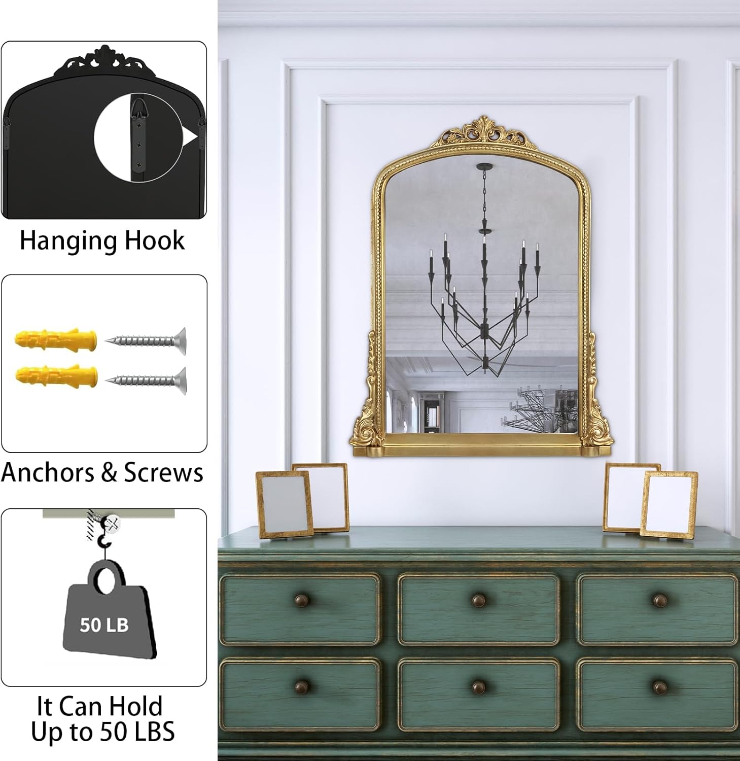 - Traditional Baroque Style: The arched mantel mirror features a beautiful and floral detail comes with a gleaming primrose ornate wood frame to your home decor. It creates a classic and high profile atmosphere.