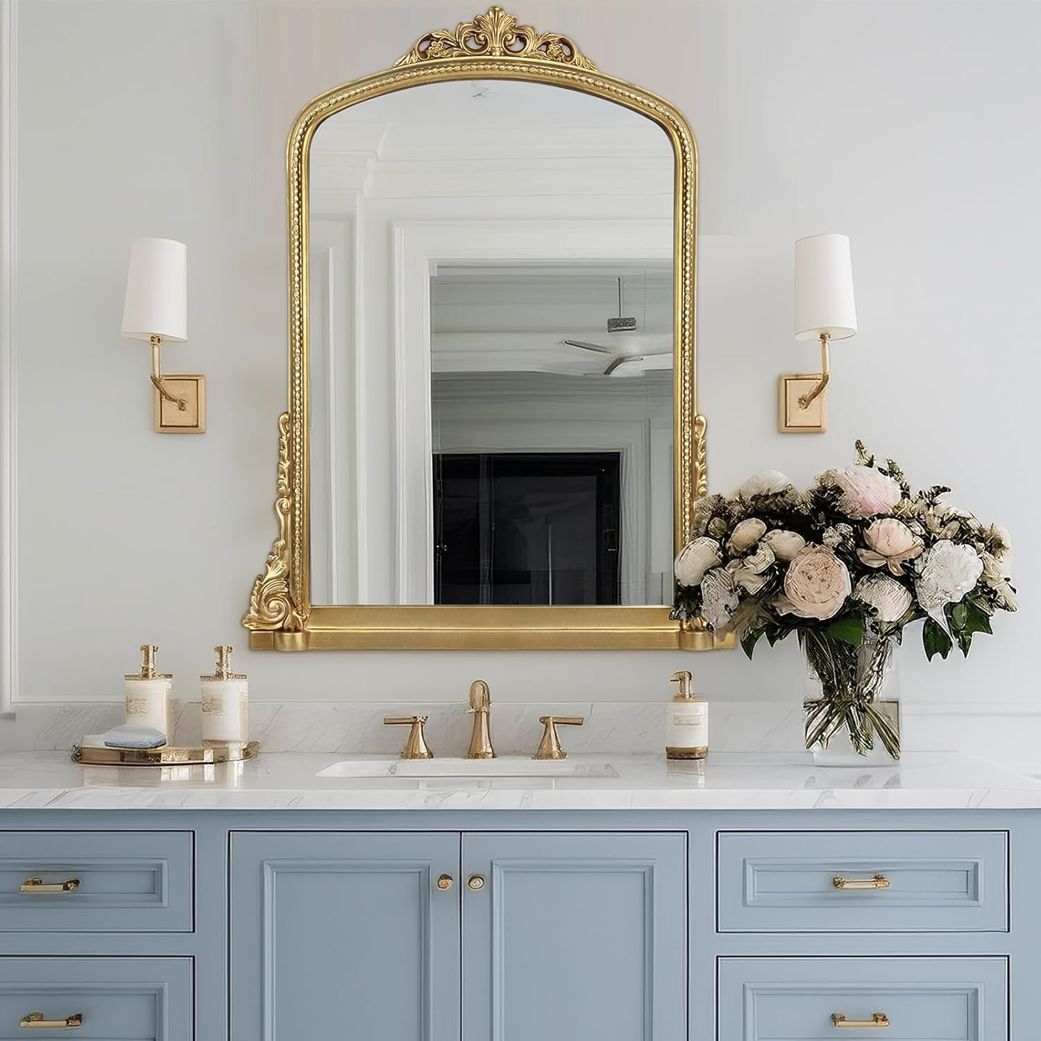 - Suit for any space: The antique gold arched mirror as a traditional decorative piece to display anywhere in your home.Wall Mirror for bathroom,living room ,bedroom .Placed at an entryway console,leaned against a wall, or positioned over a fireplace mantel. This mirror magnifies any room with a grandiose yet delicate appeal .