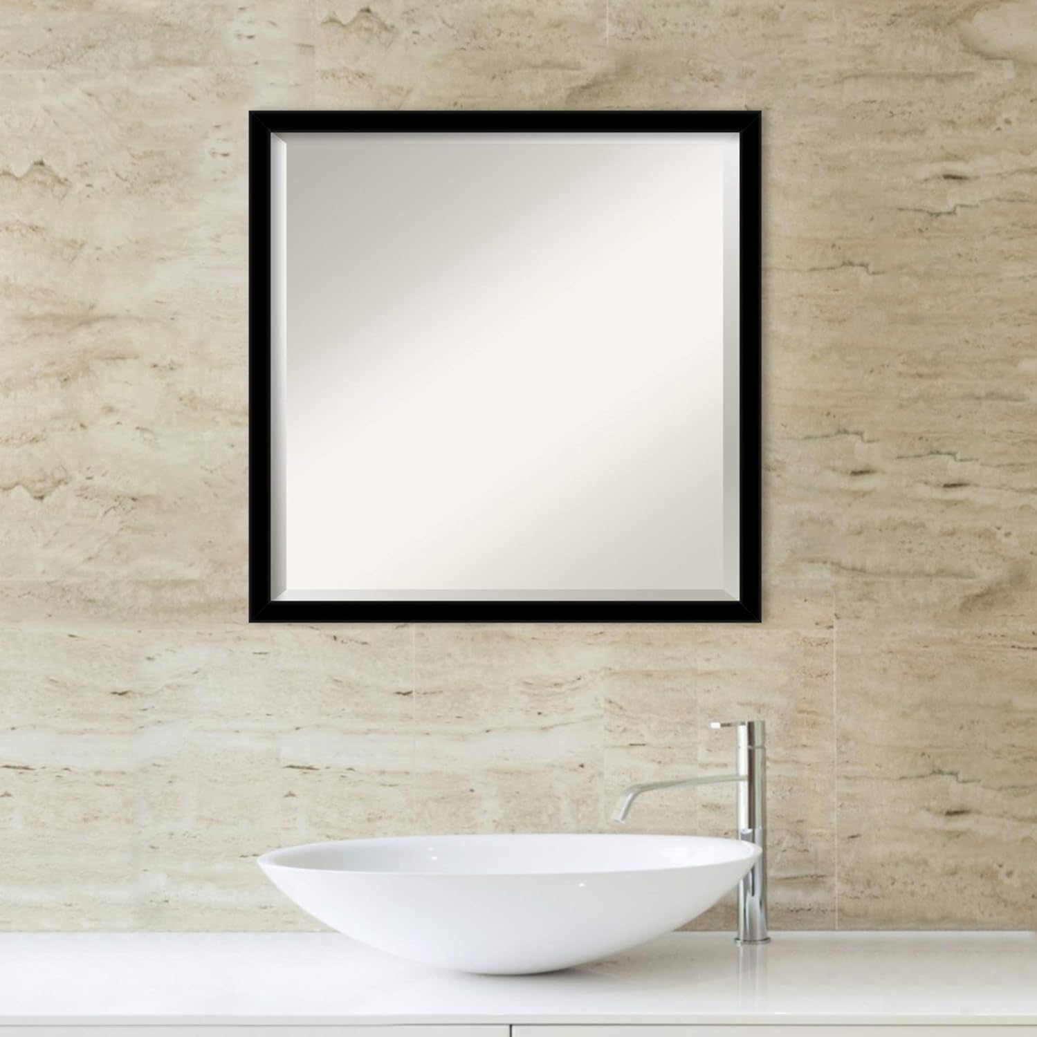 Amanti Art Black Bathroom Mirror for Over Sink, 22x22 Jet Black Square Vanity Mirror, Medium Modern Contemporary Frame, Hangs Horizonally and Vertically, Bathroom Wall Decor, Beveled Edge