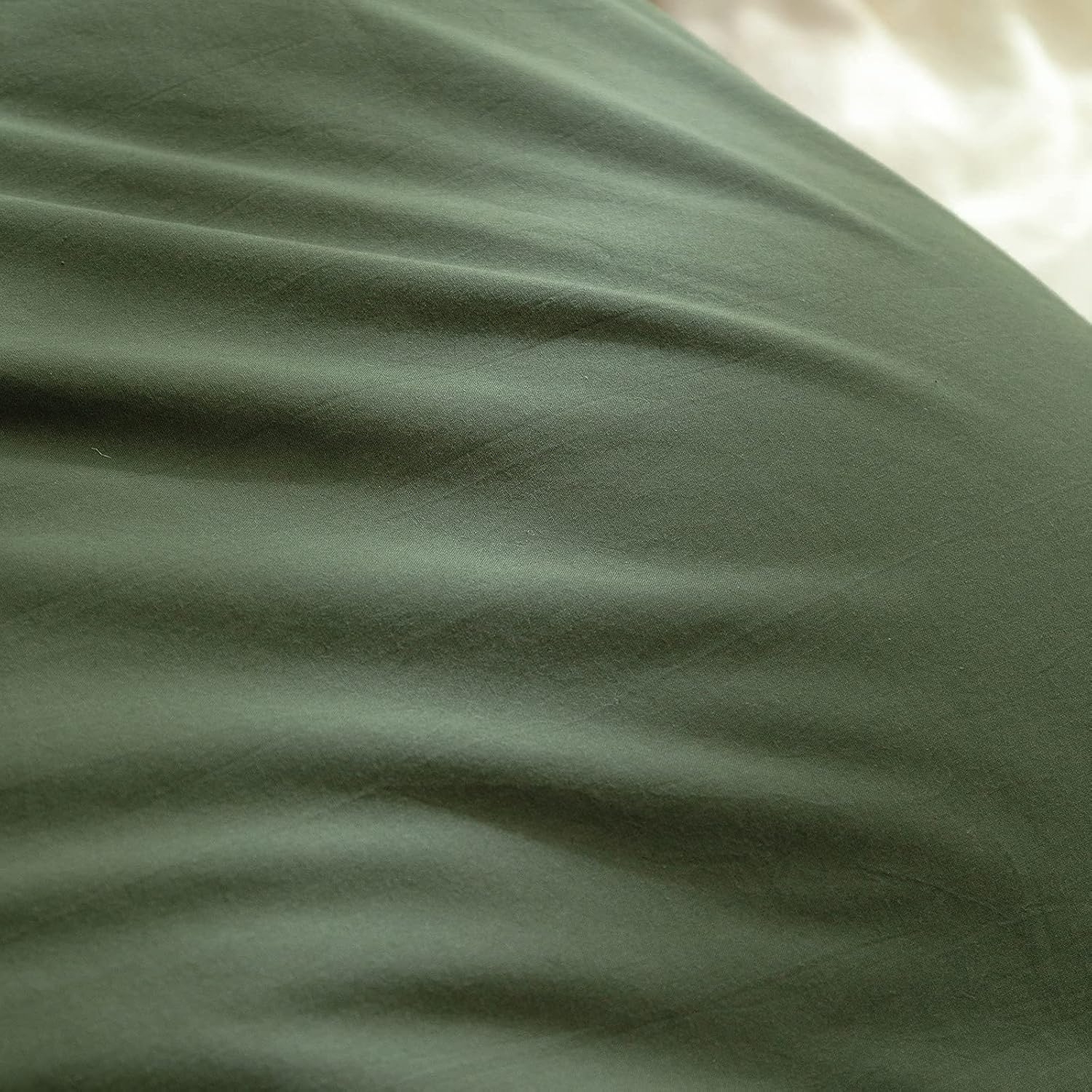 BESTOUCH Duvet Cover Set 100% Washed Cotton Linen Feel Super Soft Comfortable Chic Lightweight 2 PCs Home Bedding Set Solid Olive Green Twin/Twin XL