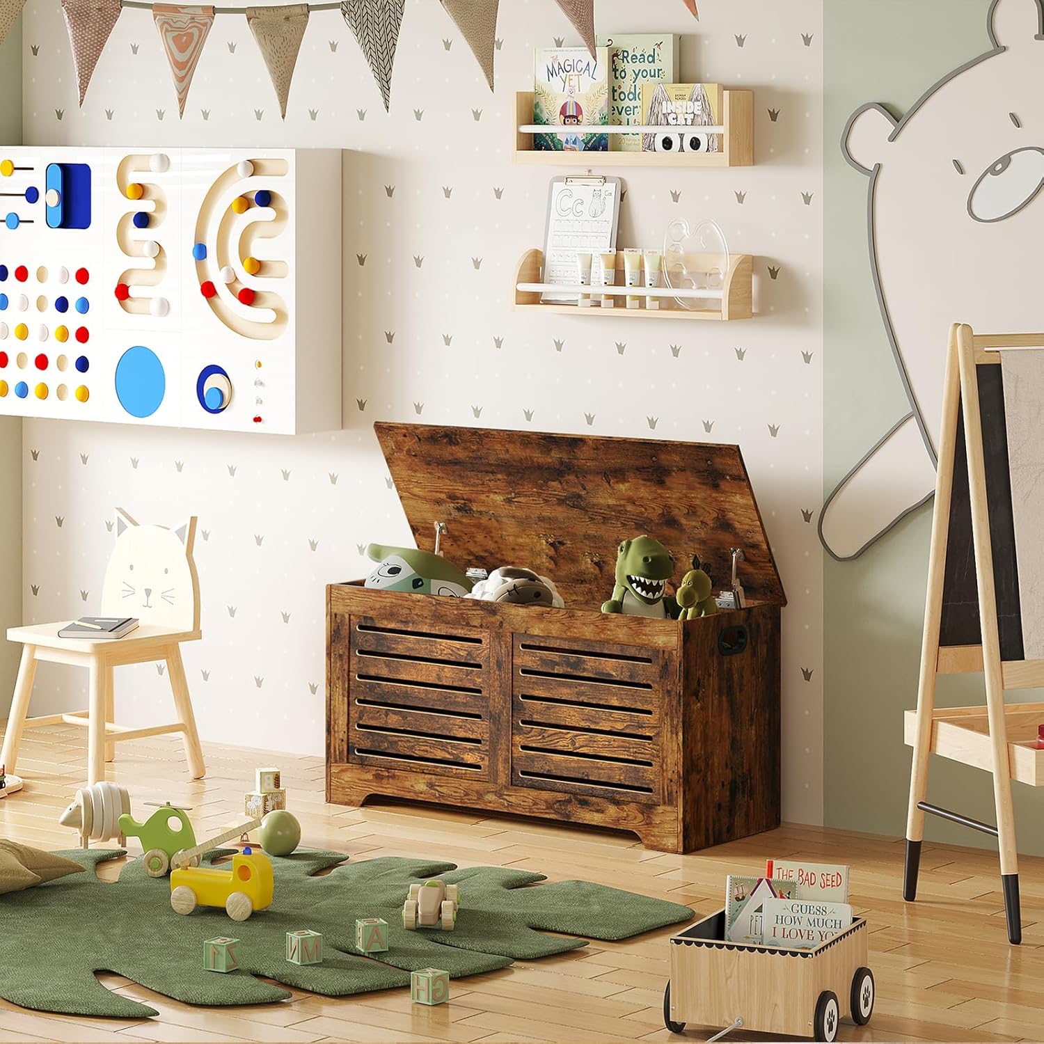 DINZI LVJ Storage Chest, Flip-Top Wooden Toy Box with 2 Safety Hinges, Retro Entryway Shoe Storage Bench, Sturdy Large Storage Trunk for Living Room, Bedroom, Easy Assembly, Rustic Brown