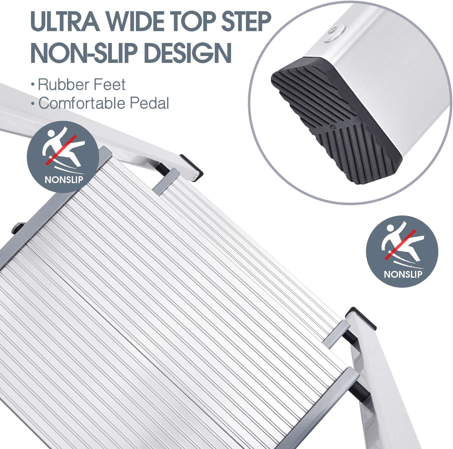 KINGRACK Aluminium 2 Step Ladder, Lightweight Step Stool with Non-Slip Pedals, Handrail, 330LBS Foldable Step Ladder for Kitchen, Garage, Home, Space Saving, Sturdy and Portable, Silver