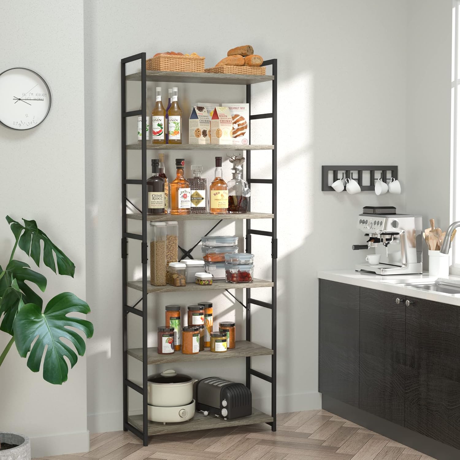 NUMENN 6 Tier Bookshelf, Tall Bookcase Shelf Storage Organizer, Modern Book Shelf for Bedroom, Living Room and Home Office, Grey