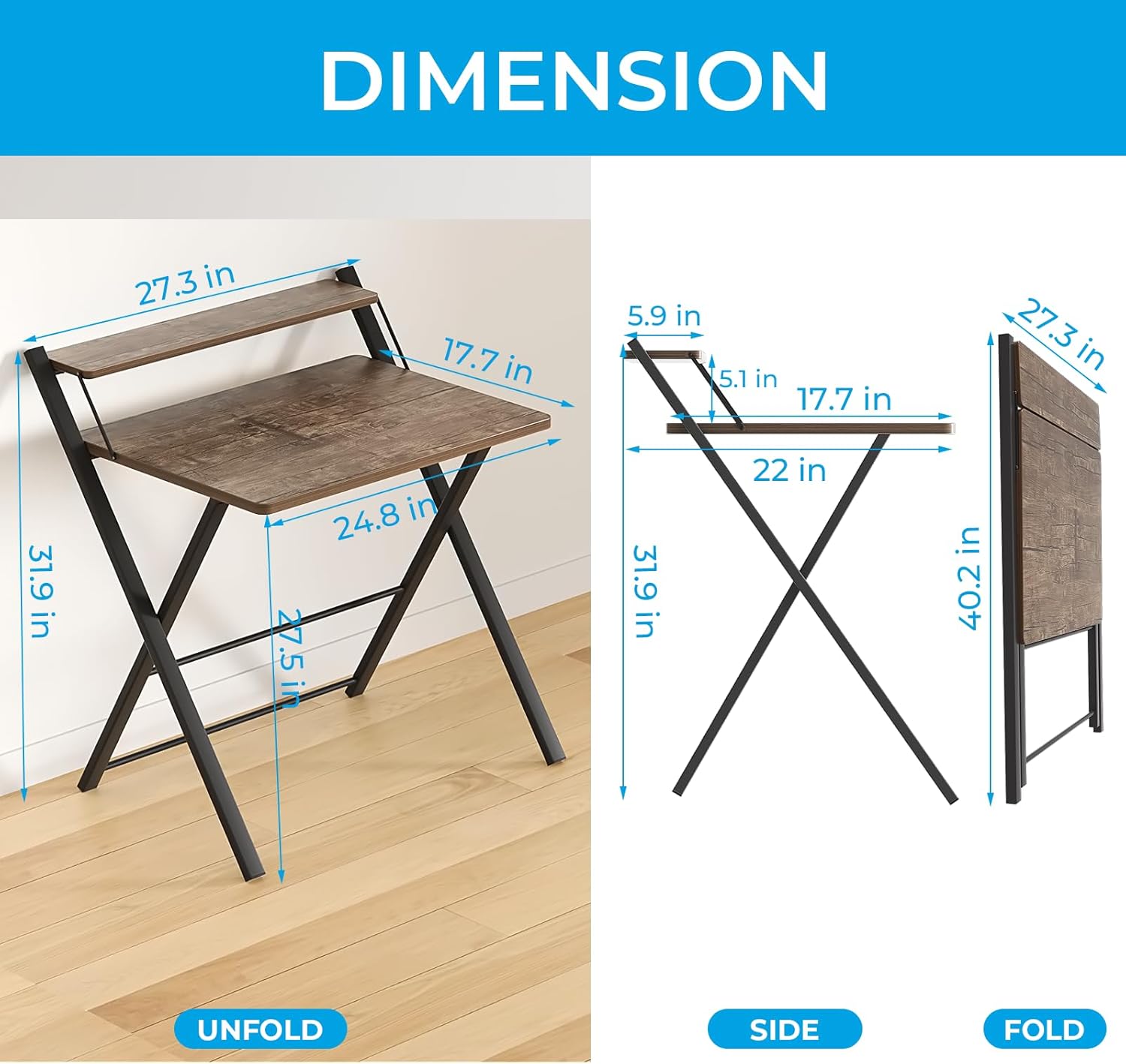 - Fold Flat, Store Anywhere: Folds down to just 1.5 inches thick. Easily slides under the bed, sofa, or behind doors, perfect for small spaces or shared rooms. Measures 22" (D) x 27.3" (W) x 31.9" (H) when fully extended