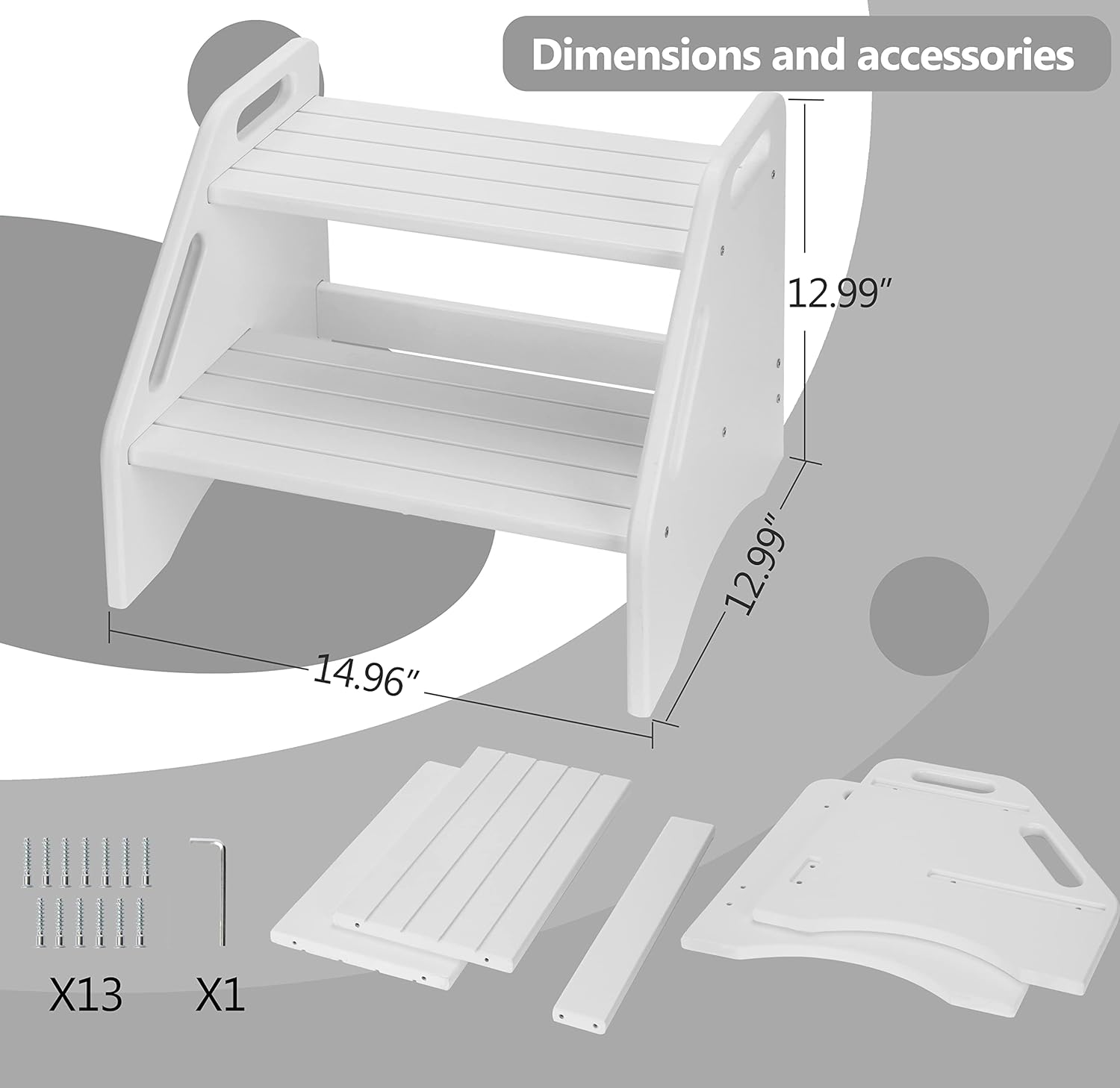 AMBIRD Wooden Two Step Stools Toddler with Safety Non-Slip Pads and Handles, Bamboo Step Stool for Bathroom, Bedroom, Kitchen Dual Height Step Stools for Kids (White)