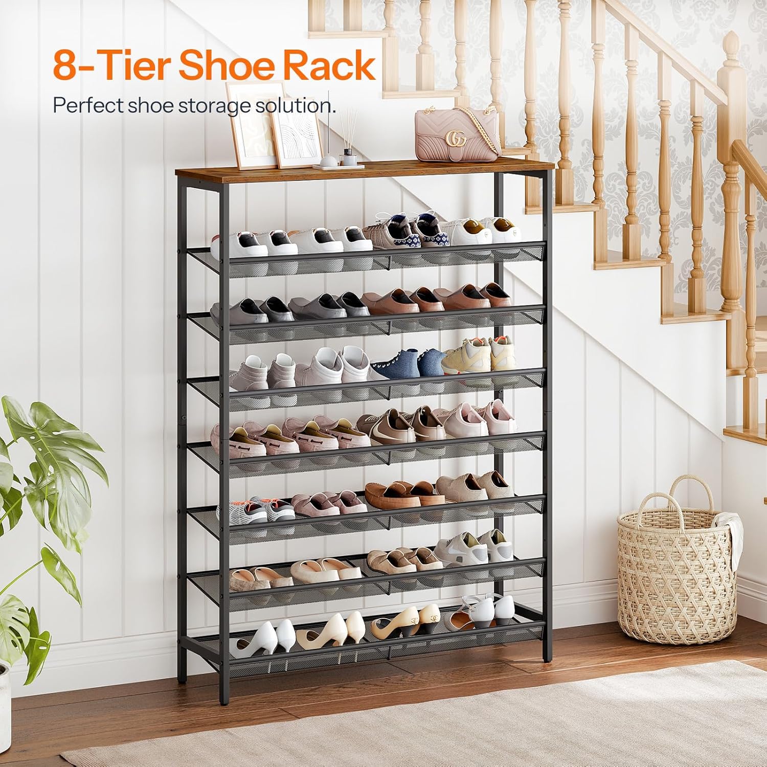 HOOBRO 8 Tier Shoe Rack, 39.4"L Shoe Shelf, Large Capacity Shoe Storage Organizer for 30+ Pairs of Shoes, Front Door Entrance, Entryway, Hallway, Closet, Space Saver, Rustic Brown and Black BF118XJ01