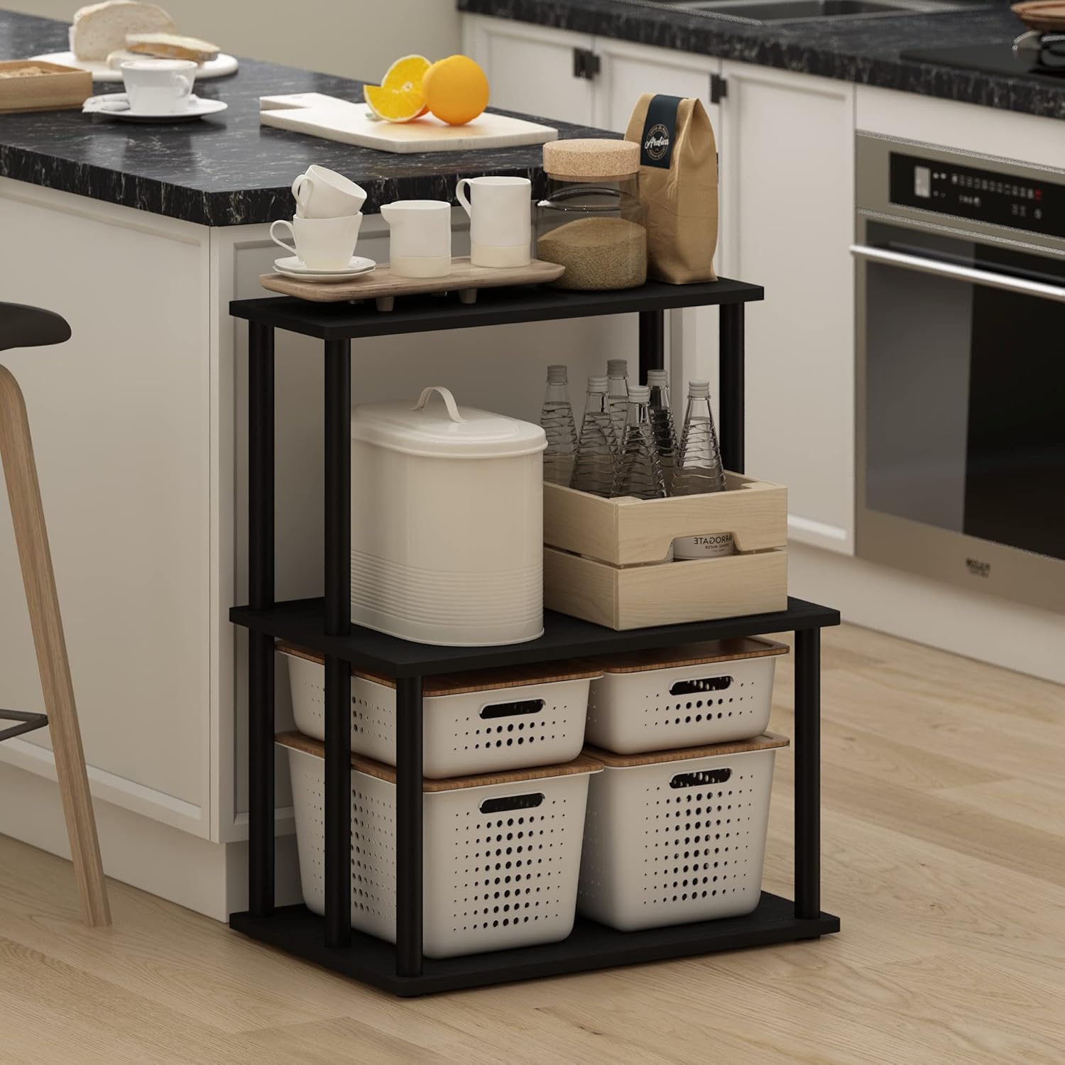 Furinno Turn-N-Tube 3-Tier Toolless Kitchen Storage Shelf, Americano/Black