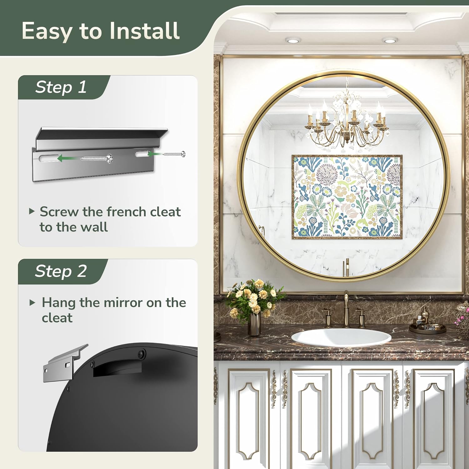 - ❥NON-RUSTING GOLD MATTE ALUMINUM ALLOY METAL FRAME ROUND MIRRO : Durable aluminum alloy combines with oxidation process makes black frame with unique brush/matte texture, more metallic, non-deformed and non-rusting and more More durable than stainless steel. Will not rust in wet environments. Horizontal/Vertical installation.