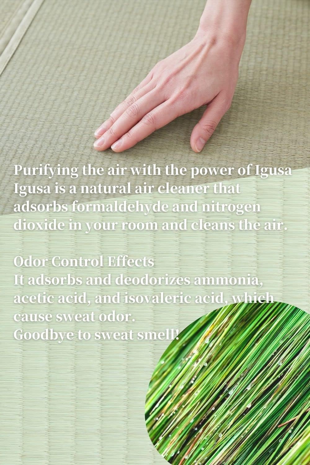 - ✅ Our tatami mat absorbs moisture, sweat and odor, leaving the air feeling clean and fresh. Its rush material provides natural humidity control and air purification.Comfortable space with moisture absorbed and desorbed.Igusa absorbs moisture 2.5 times better than cotton.Igusa is a natural air cleaner that adsorbs formaldehyde and nitrogen dioxide in your room and cleans the air.