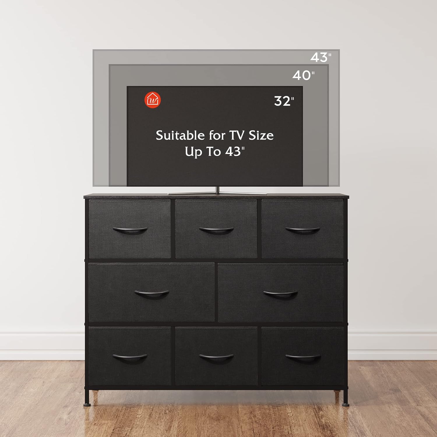 WLIVE 8 Drawer Dresser for Bedroom, Fabric Black Dresser with Large Storage Drawer Unit for Entryway, Chest of Drawers for Living Room