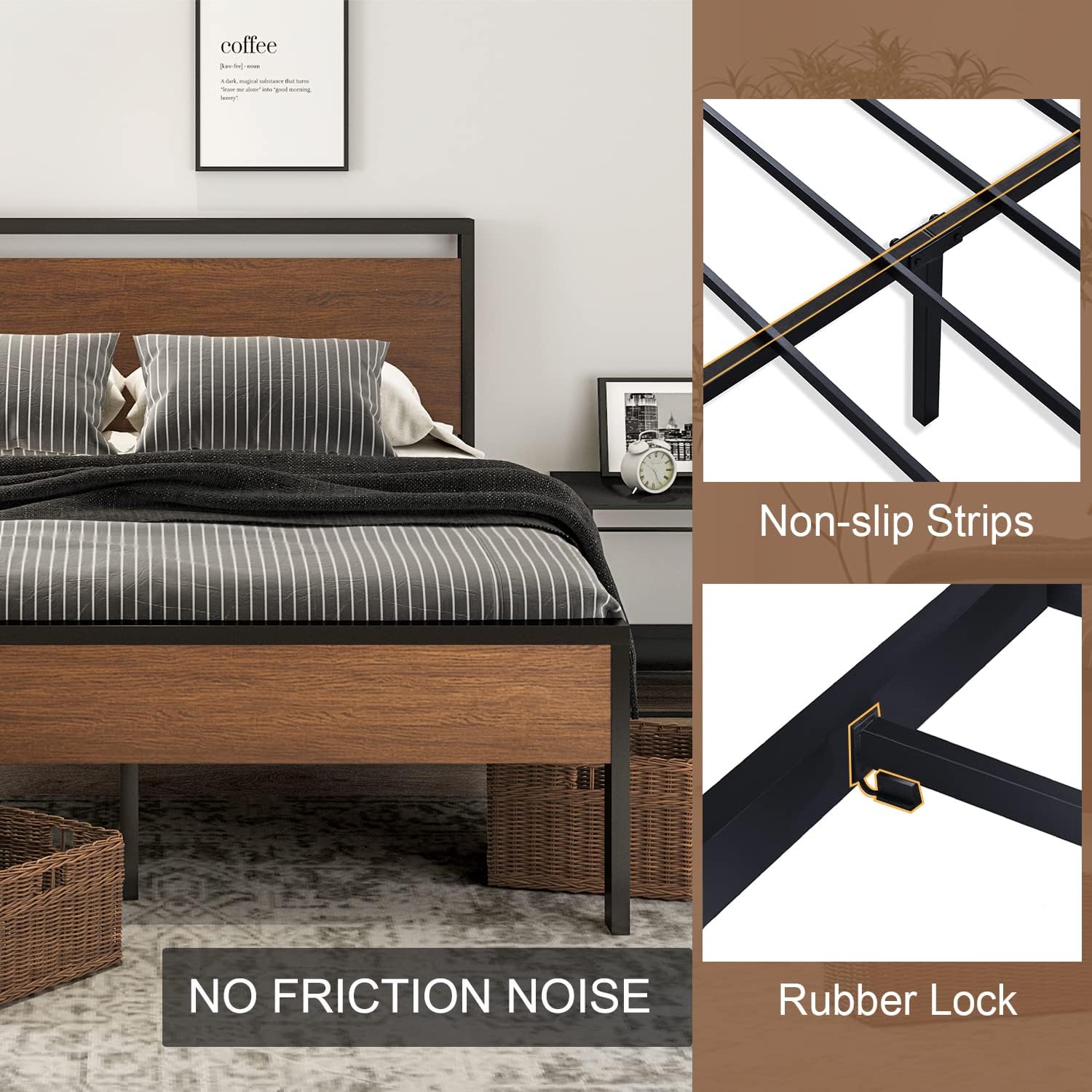 - Unique Design: The combination of rustic style headboard and footboard with retro frosted metal slats creates a strong industrial / rustic flair, adding an industrial and unique touch to your room. The headboard consists of a waterproof & scratchproof wood board