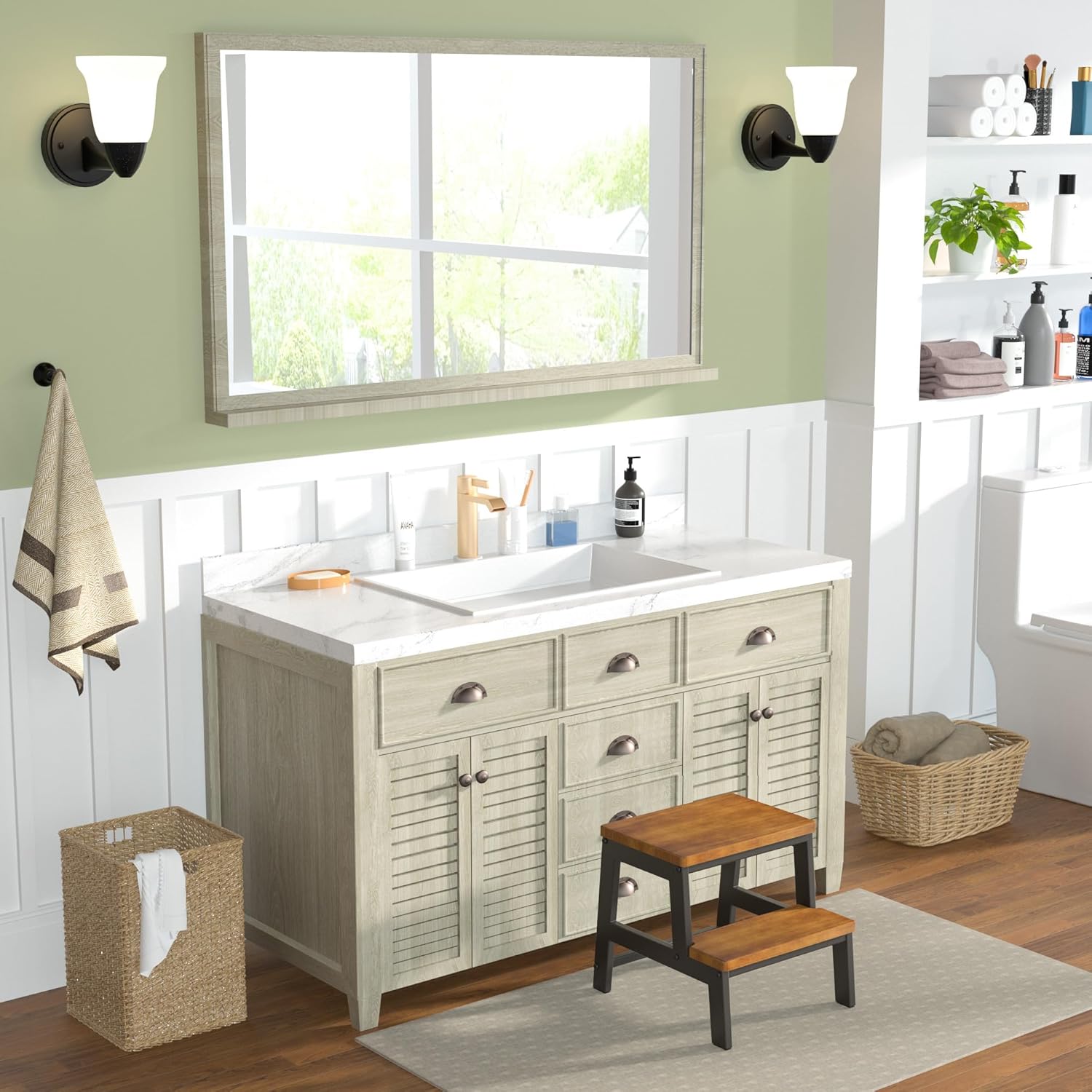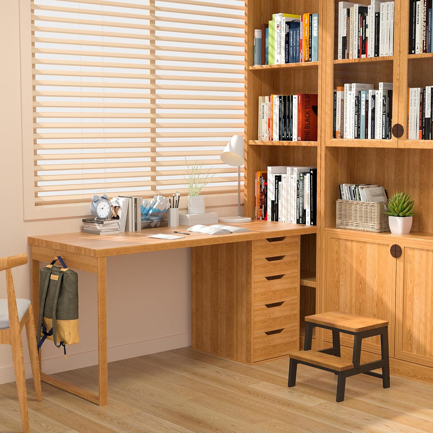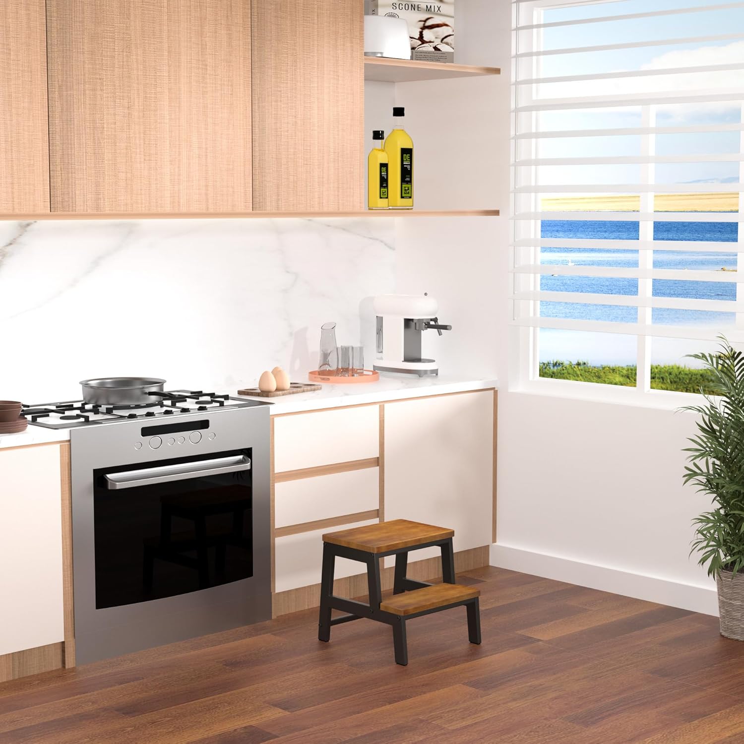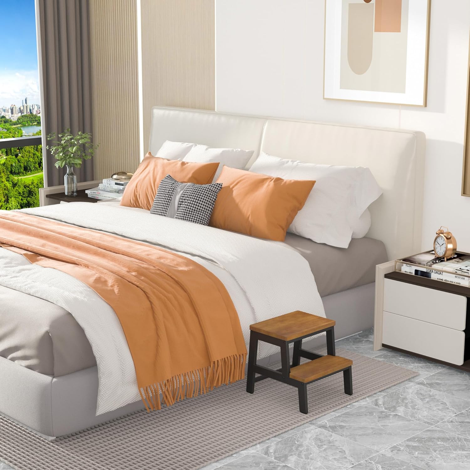 2 Step Wooden Step Stools for Adults Non-Slip, Sturdy Bed Steps for High Beds Easy Assembly, Portable Two Step Stool for Kitchen Bathroom Bedroom - Holds Up to 500 Lb