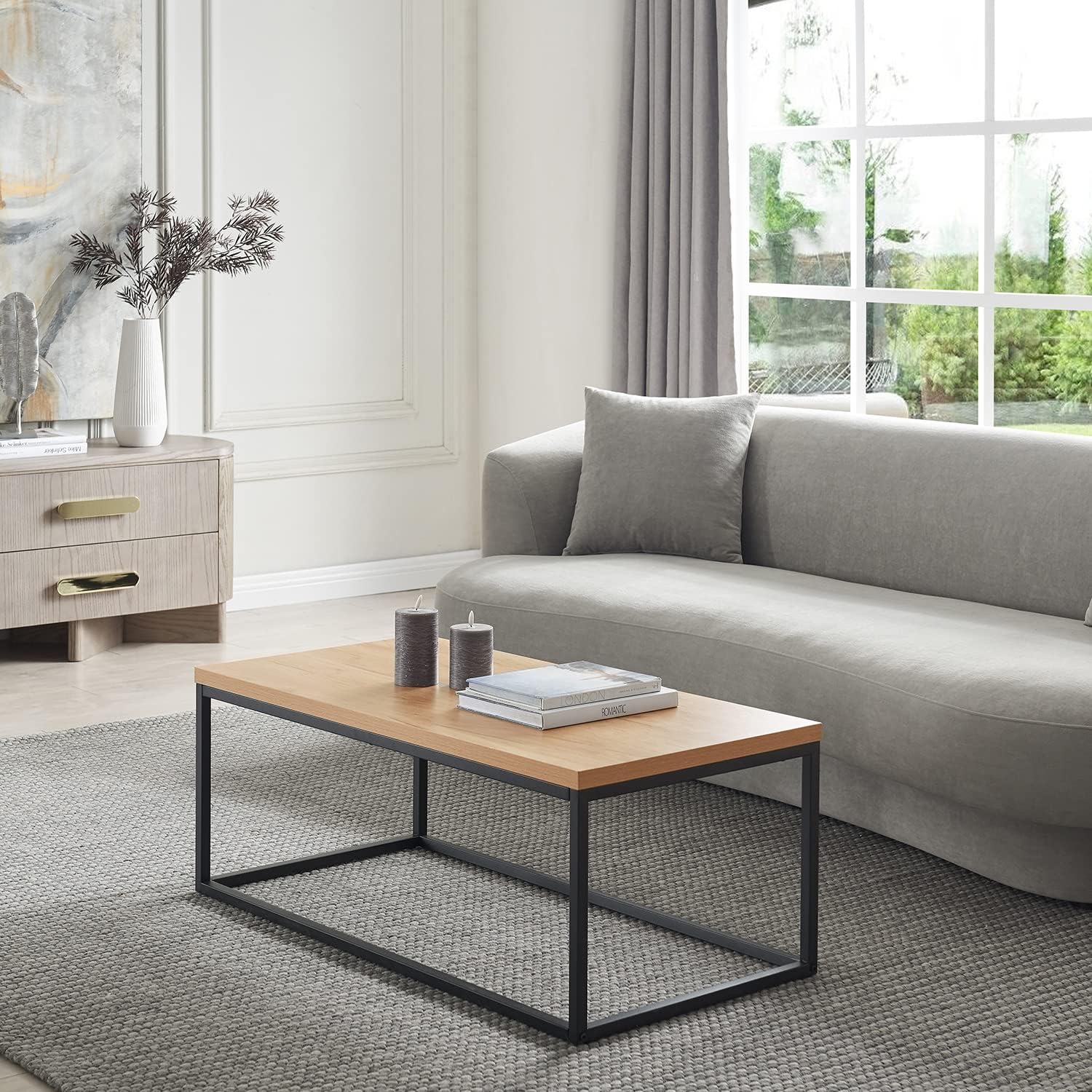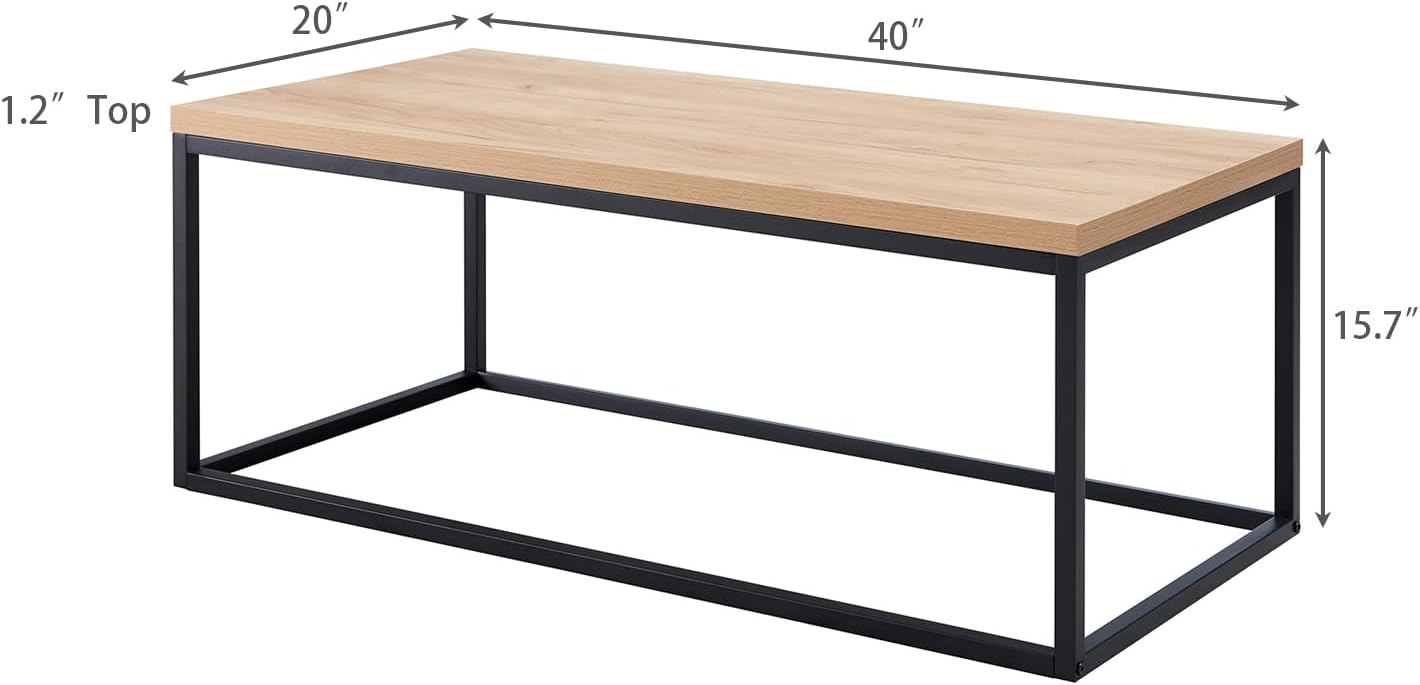 CENSI 40-Inch Natural Oak Accent Coffee Table Ottoman for Living Room, Rectangle, Mid-Century Modern Industrial Style, Extra Thick Top, Light Wood and Metal (Oak)