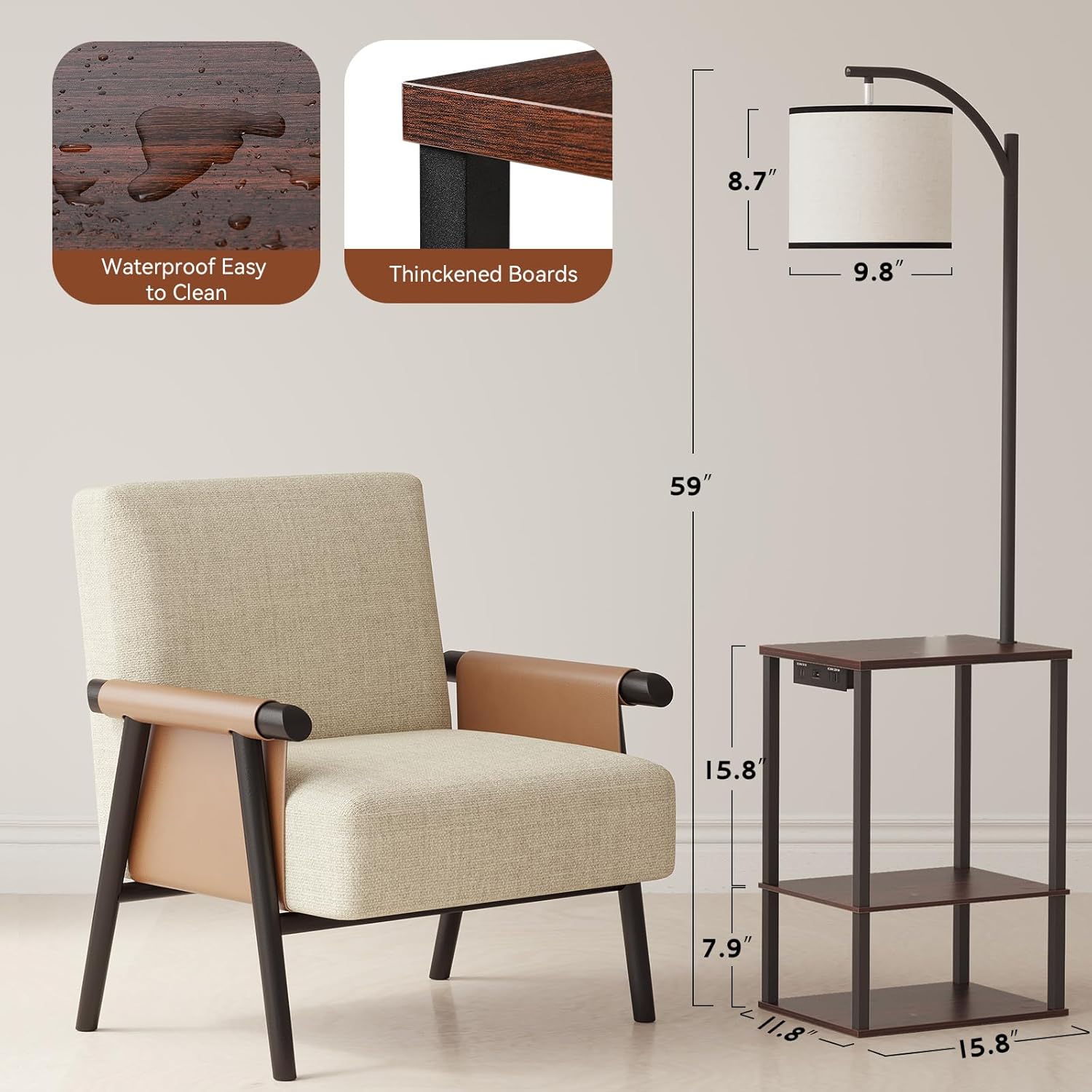 - Durable & Stable Floor Lamp with Storage: Our floor lamp with table is crafted from sturdy wood, boasting a stable structure with a maximum weight capacity of 50 lbs. It’s waterproof, scratch-resistant, and easy to clean. Beyond adding warmth to your room, its three-tier open shelves offer versatile storage or display space for vases, books, coffee cups, plants, photo albums, and more, all designed to decorate your daily life.