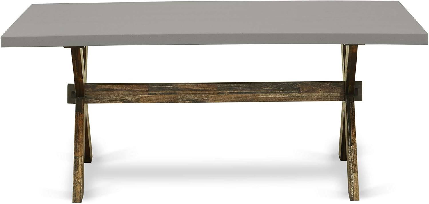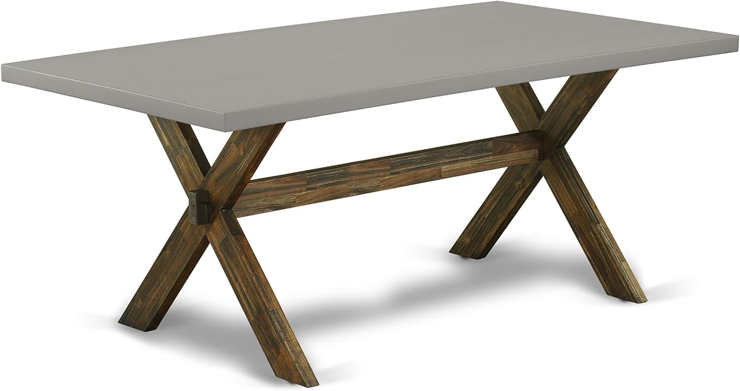 - DINING TABLE SET FINISH: This dining table boasts a cement rectangular tabletop paired with X-style legs finished in a charming distressed Jacobean style. The accompanying Parsons dining chairs come with comfortable light beige linen fabric seats and four sturdy legs crafted from antique walnut wood that has been sandblasted for a rustic look. Our dining set features a meticulously curated color palette, elevating the overall aesthetic to a luxurious level that enhances the beauty of any home.