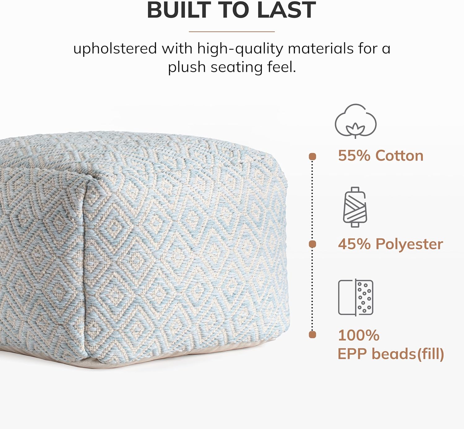 - Eco-Friendly & Durable Fill: Pre-filled with recyclable and resilient Expanded Polypropylene (EPP) beads, this pouf ottoman foot rest provides exceptional support while promoting sustainable living practices.