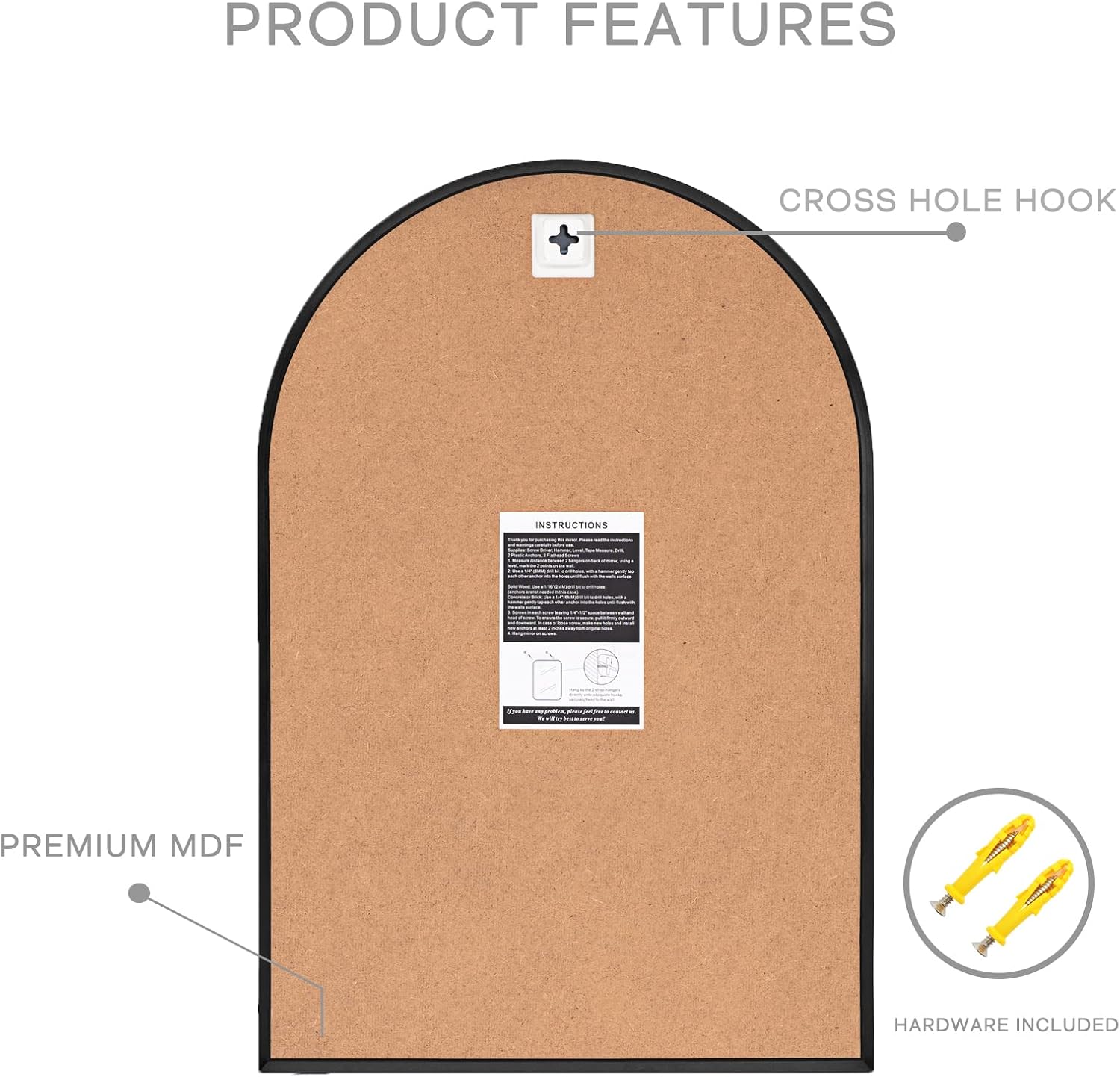 Arched Wall Mirror for Bathroom, 24"x36" Black Modern Metal Frame for Entryway Living Room Bedroom Wall Decor