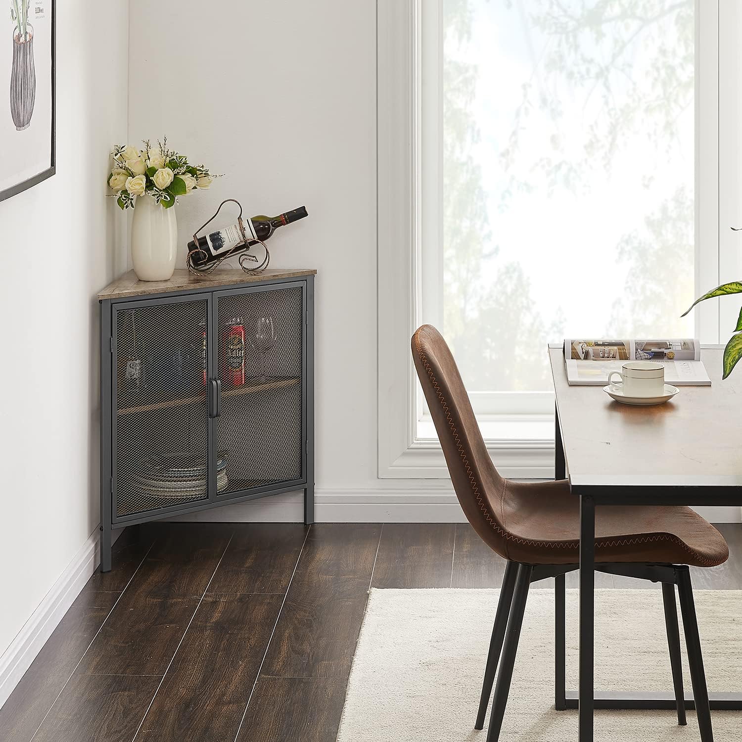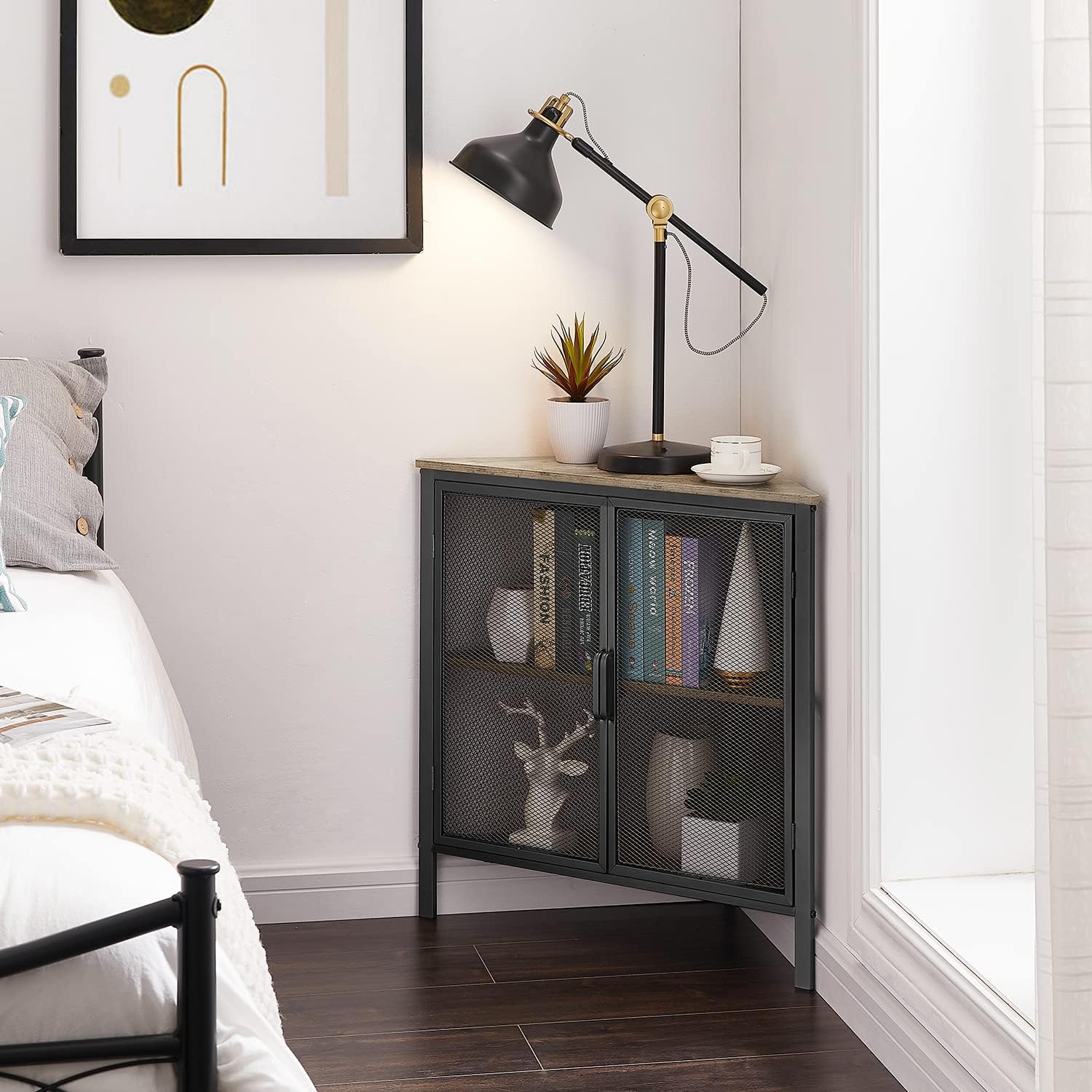 - ❤【Simple Industrial Style】The VECELO 3 tier corner cabinet is ideal for small spaces, apartments, dorms or any place with a limited amount of space. The corner cabinet features warm retro color panels and matte black tubes, which are perfectly integrated into any home decor.