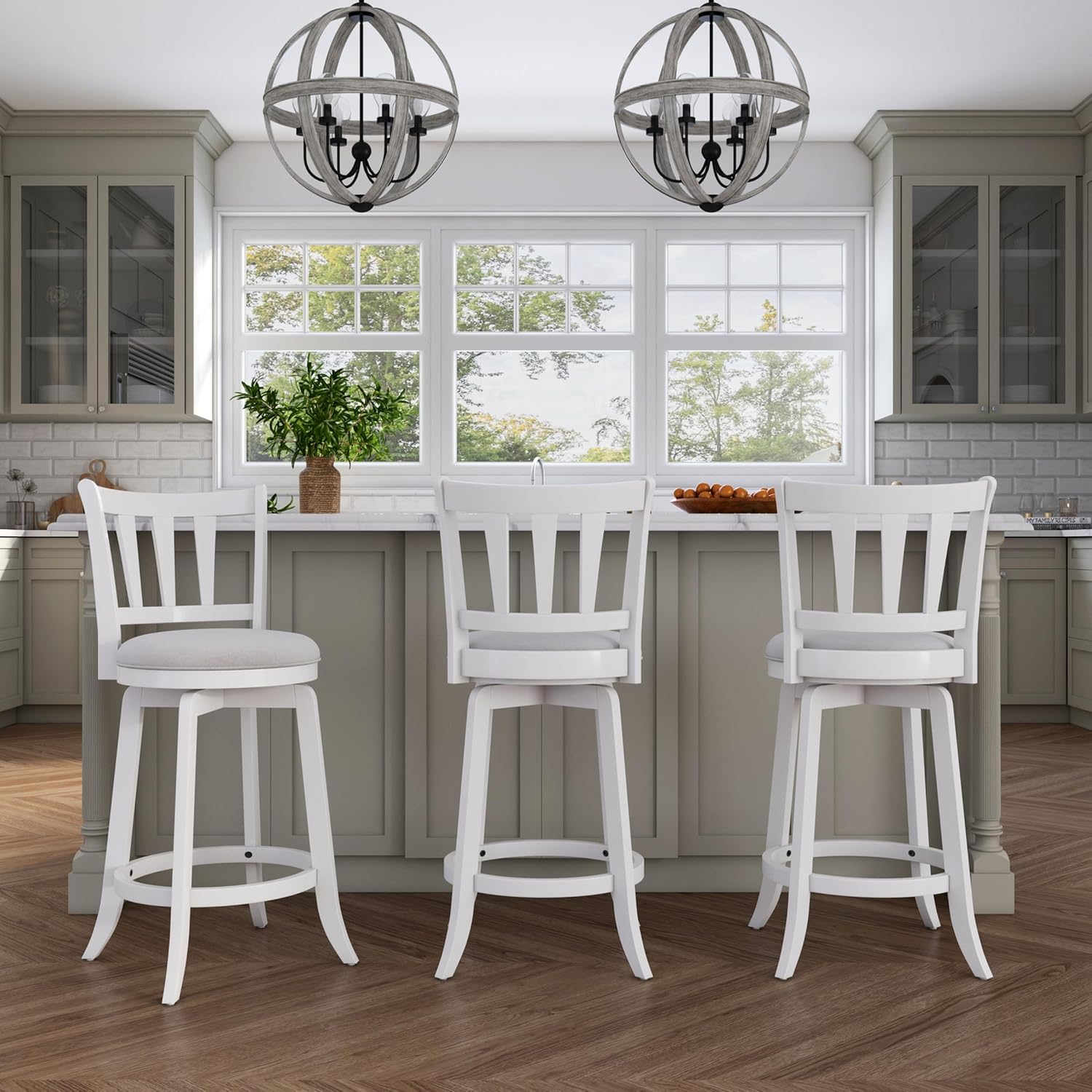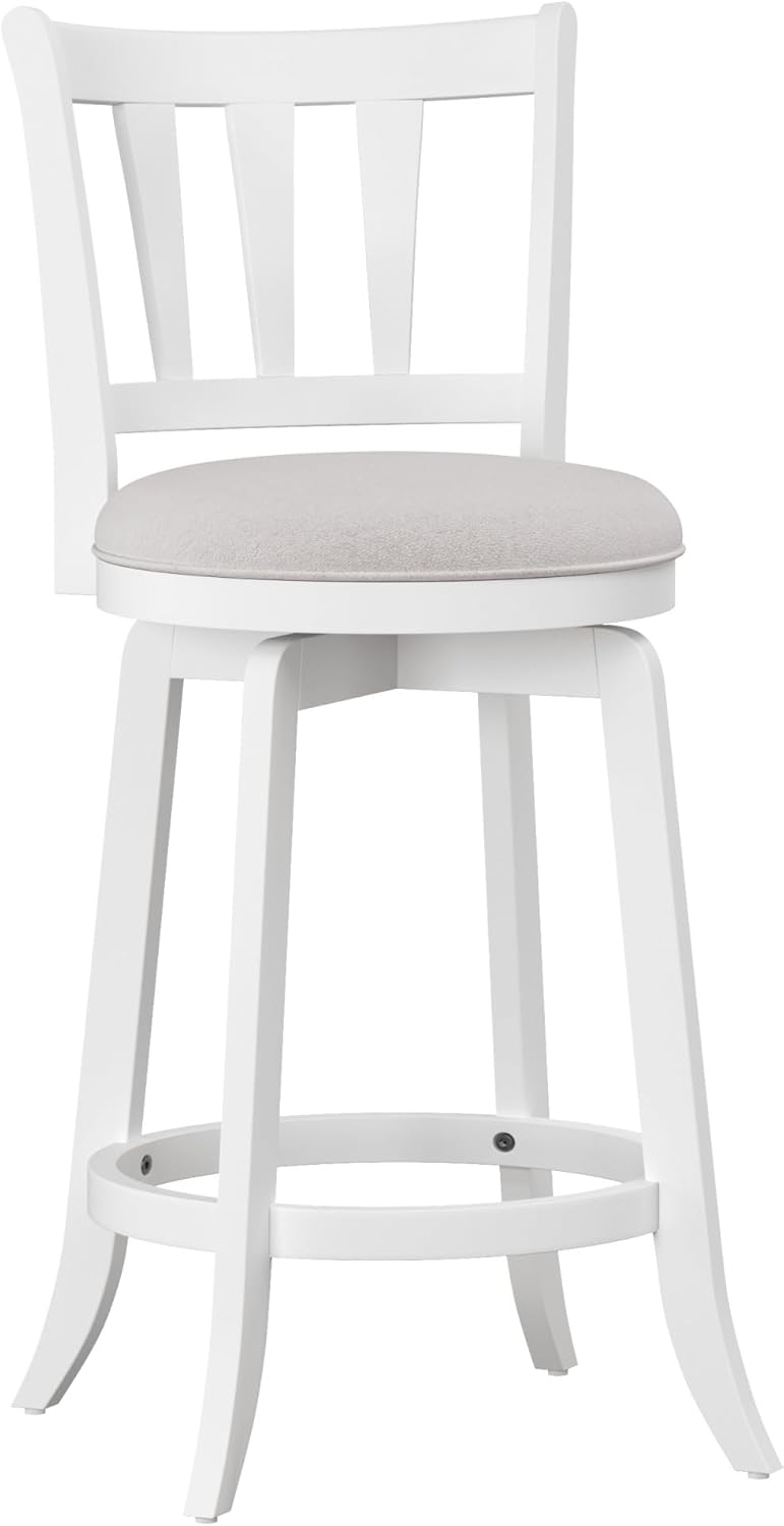 - Handsomely crafted: Transitional counter height stool features a sleek wood frame in a white finish with a 100% polyester upholstered seat, offering a stylish and comfortable seating experience with a 250lb. suggested weight limit.