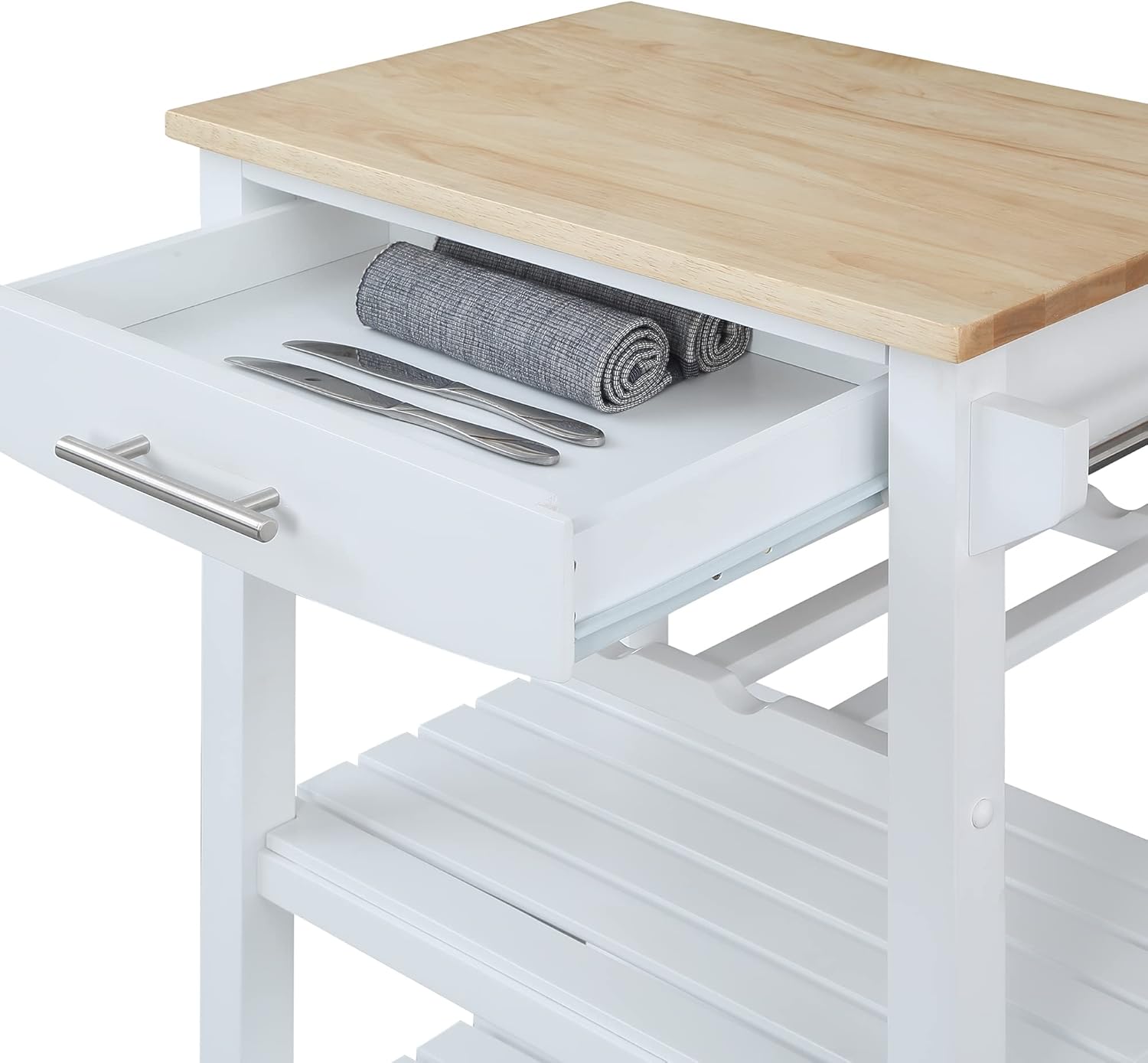 Convenience Concepts Ellaine 4 Tier Kitchen Cart with Drawer and Wine Rack, 24.75", White/Butcher Block