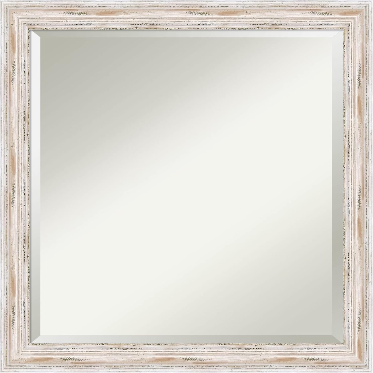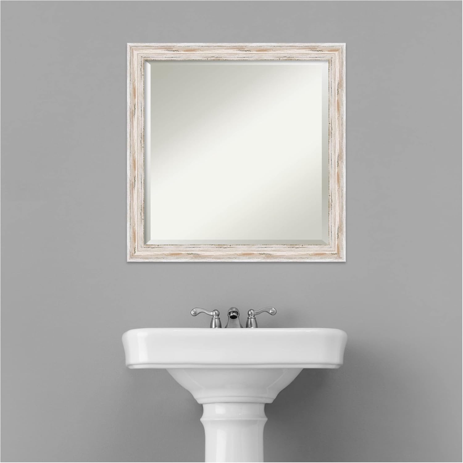 Amanti Art White Bathroom Mirror for Over Sink, 23x23 Alexandria White Wash Narrow Square Vanity Mirror, Medium Coastal Wood Frame, Hangs Horizonally and Vertically, Bathroom Wall Decor, Beveled Edge