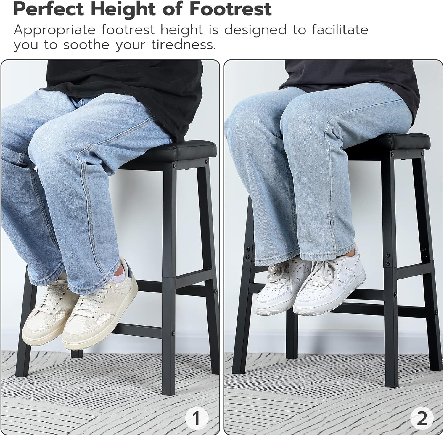 - Added Bonus: This set of breakfast stools is specially designed with comfortable footrests 6.3"-9.3" in height. 4 anti-slip pads are provided for each bar stool to protect your floor or blanket from scratches, ensuring great stability of the bar stool. Scratch-proof and skid-resistant
