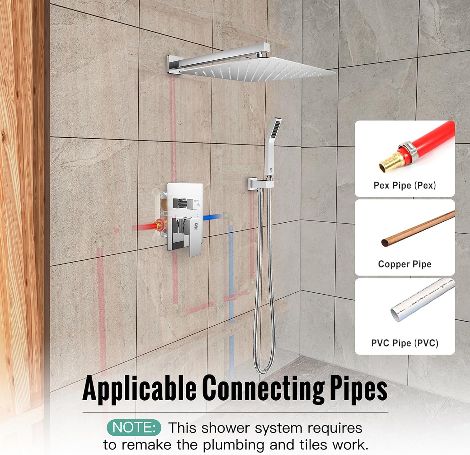 - Reliable Support & Certified Safety: Backed by 24/7 customer support, this Rain Shower Head and Handle Set ensures a stress-free experience. It features a cUPC certified pressure balance valve with built-in check valves to monitor water pressure and prevent scalding, approved by the California Energy Commission for standard 1/2-inch US pipe connections.