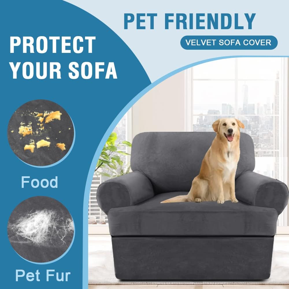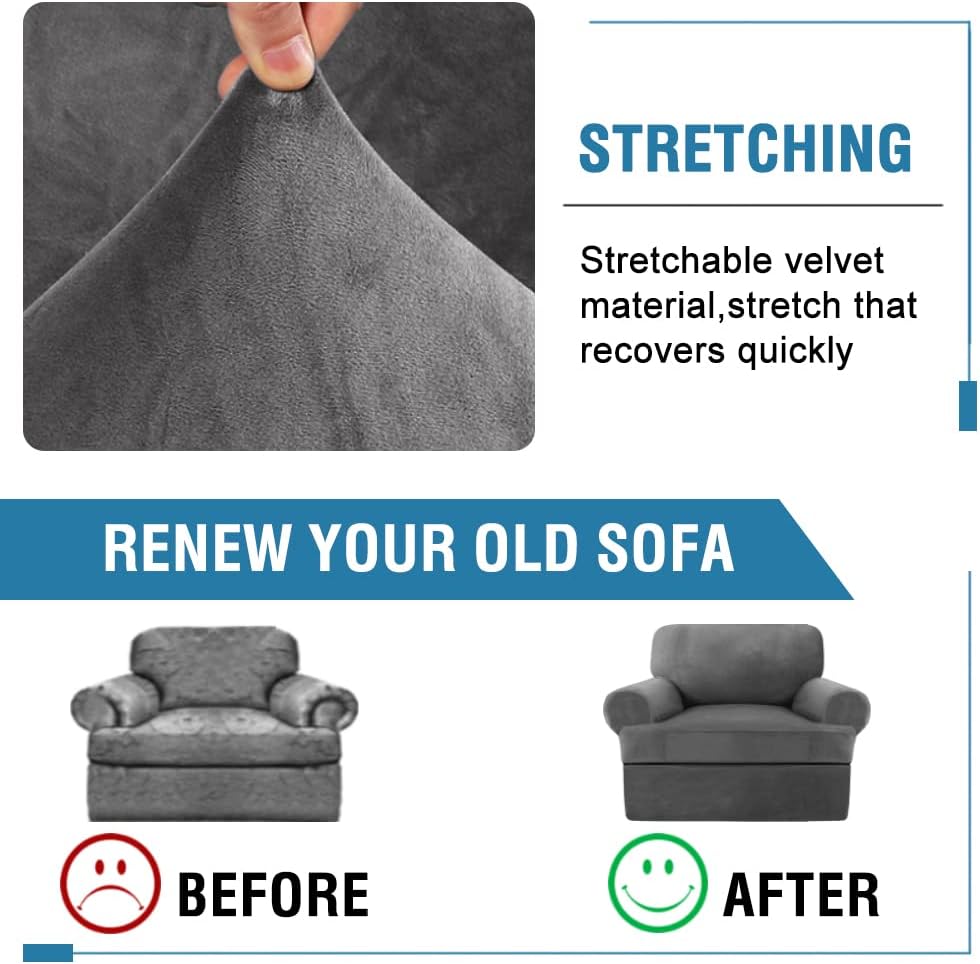 H.VERSAILTEX Sofa Cover 2 Piece T Cushion Armchair Slipcovers Thick Velvet Couch Cover Furniture Protector Stretch T Cushion Sofa Covers for 1 Cushion Couch with 1 Individual T Cushion Covers, Grey