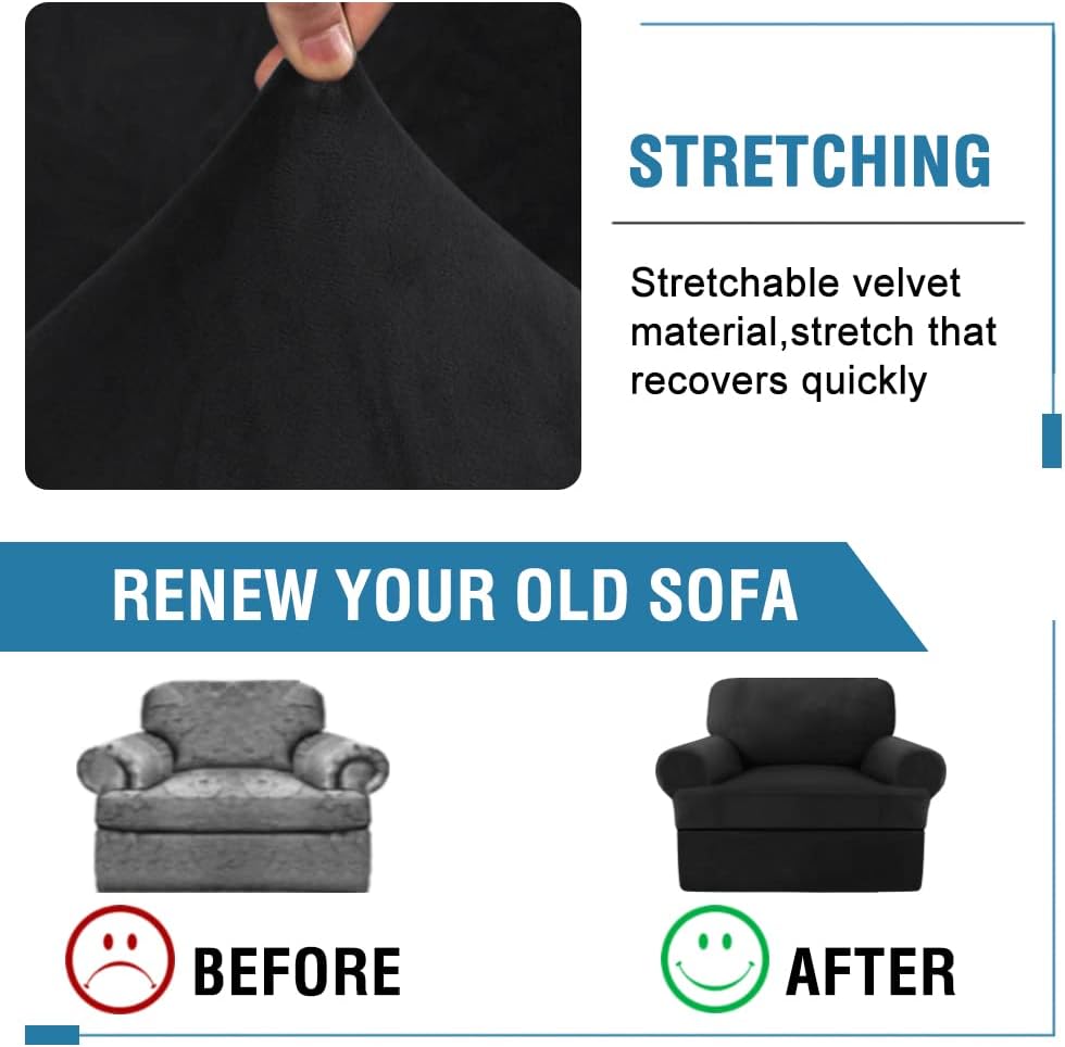 H.VERSAILTEX Sofa Cover 2 Piece T Cushion Armchair Slipcovers Thick Velvet Couch Cover Furniture Protector Stretch T Cushion Sofa Covers for 1 Cushion Couch with 1 Individual T Cushion Covers, Black