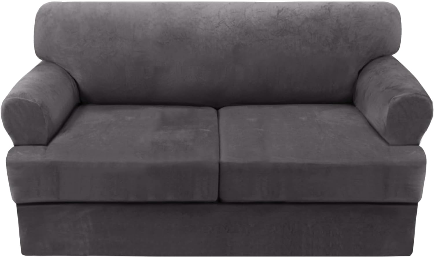 H.VERSAILTEX Sofa Cover 3 Piece T Cushion Loveseat Slipcovers Thick Velvet Couch Cover Stretch T Cushion Sofa Covers for 2 Cushion Couch with 2 Individual T Cushion Covers Washable, Grey